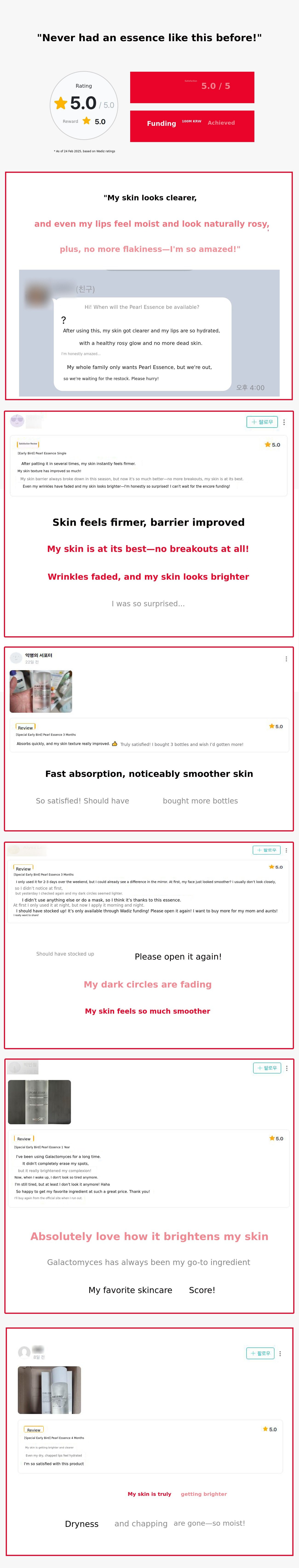 When it comes to introducing the maker, I usually prefer to write plainly without fancy designs, but today I feel especially sentimental. Praying that the Pearl Essence will receive as much love from supporters as the ampoule and cream,