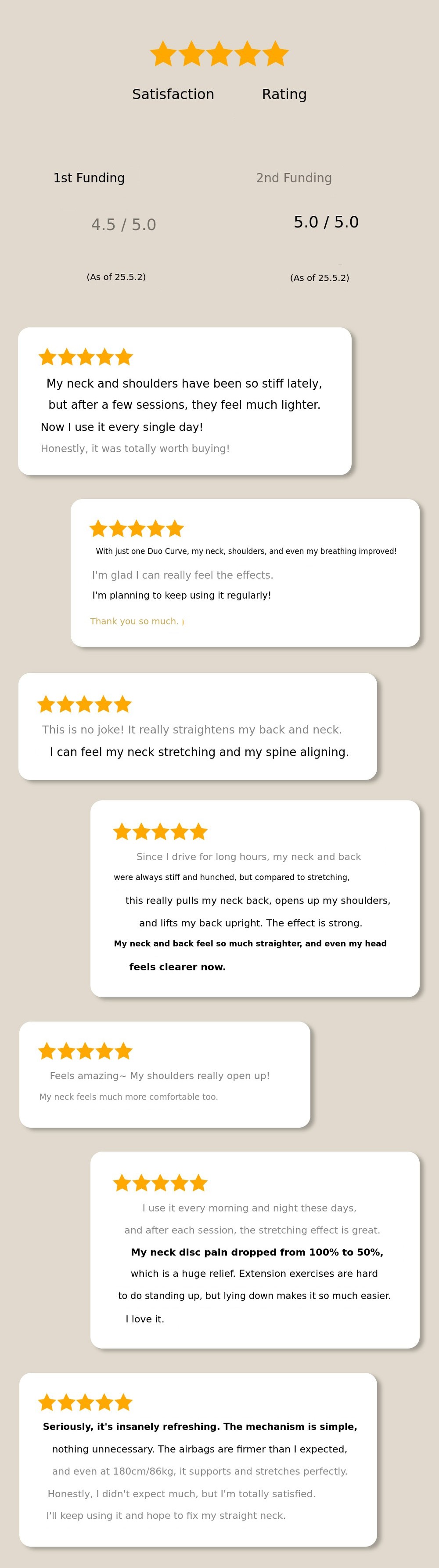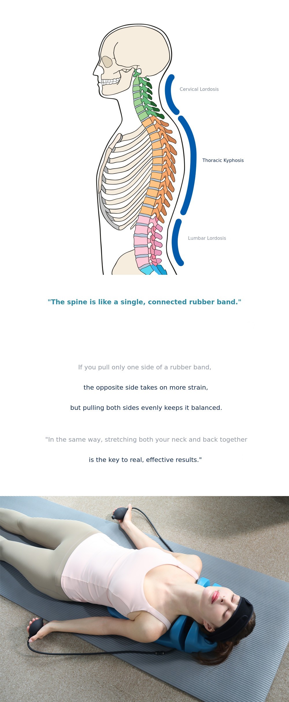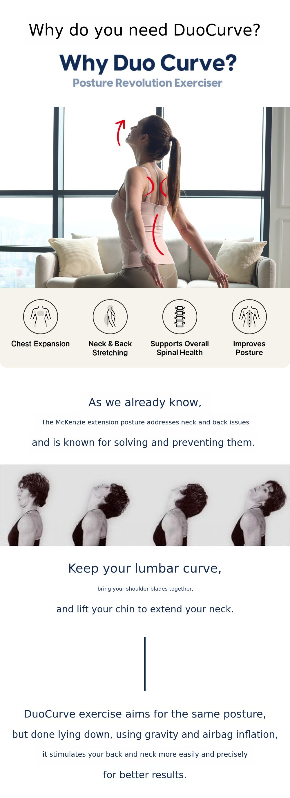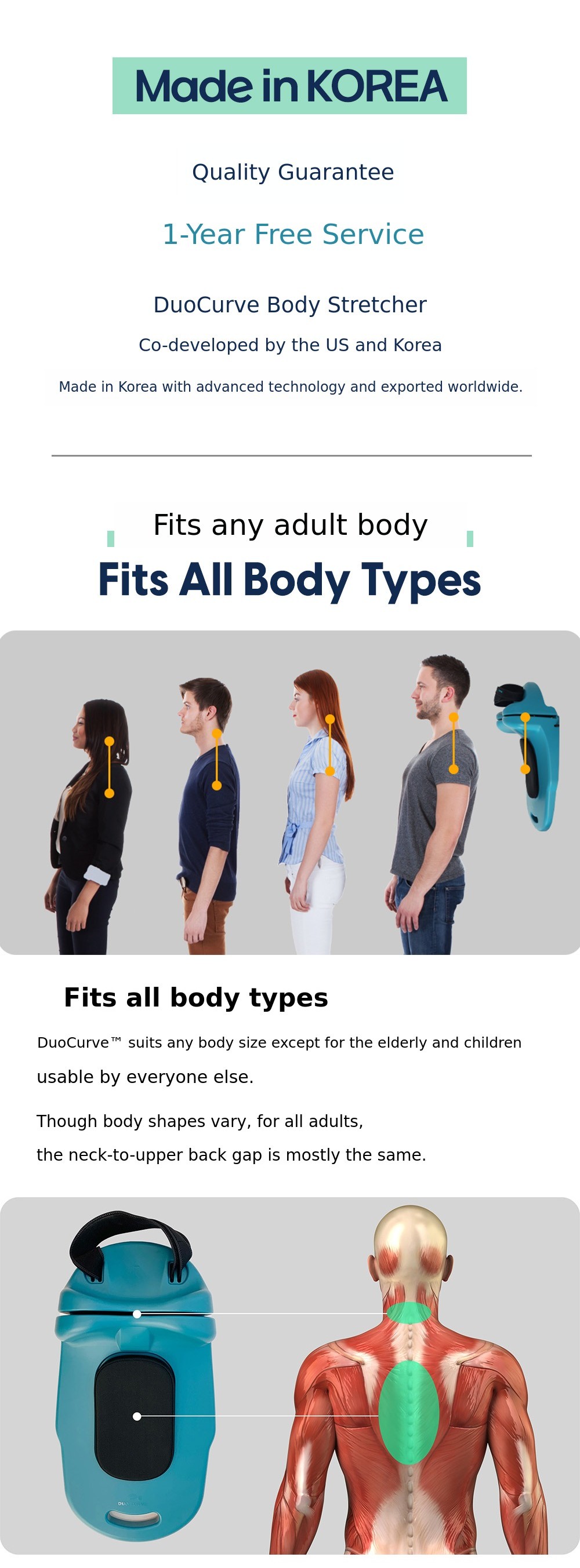 For those of us living in the era of 100-year lifespans, proper posture is most important. If you can maintain your spinal health with just 10 minutes a day, there is no need to hesitate. After using DuoCurve for 10 minutes and standing up, you will immediately feel your chest open and your spine straighten. If you use it consistently every day, not just for a day or two, you will definitely notice positive changes in your posture that has been affected by bad habits.