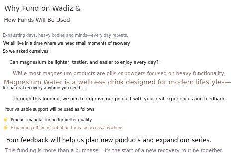 1. ๐ง National-level Magnesium Water - Zero sugar, peach-flavored health drink for fast recovery 2. โก Post-exercise Recovery and Energy Boost - Magnesium, amino acids, and electrolytes support muscle and nerve recovery 3. ๐ Exclusive Rewards for Backers - AminoRegen Active 2 boxes and Magnesium Water bottle worth 80,000 KRW