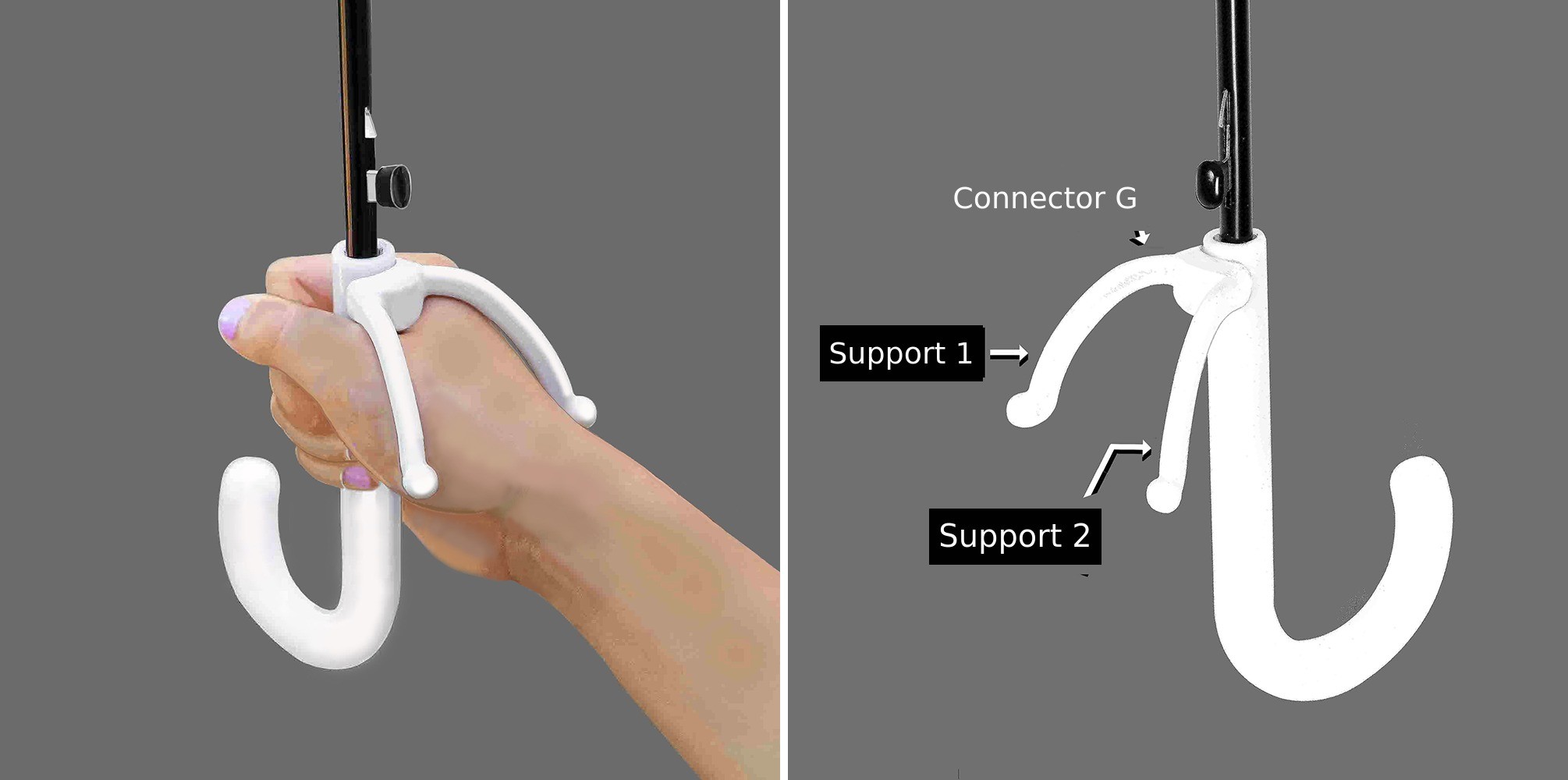 So that the weight of the umbrellaIs supported not by the grip strength, but by the thumb and index finger, And,