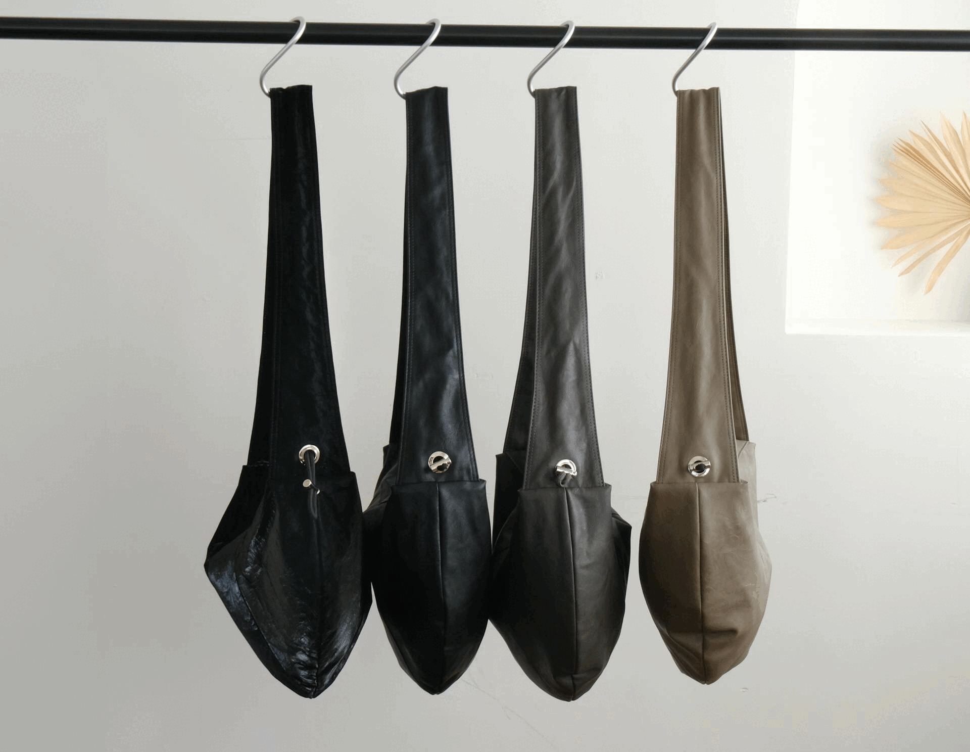 A. When not in use, we recommend storing the bag with stuffing inside to prevent it from losing its shape. Due to the nature of vegan leather, washing is not possible. In case of contamination, please wipe with a wet tissue.