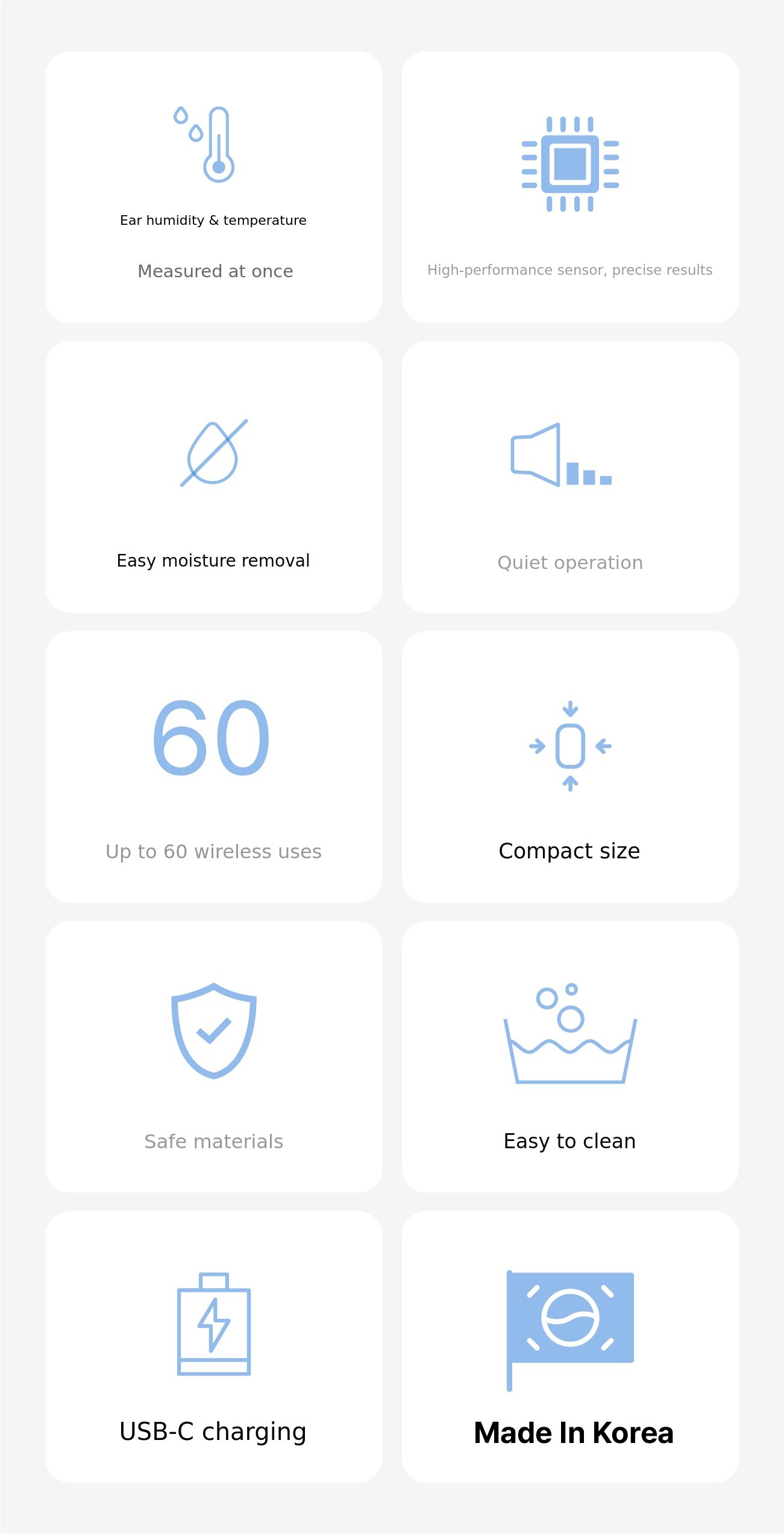 1. 🐾 Pet Ear Dehumidifier - Removes ear moisture in 3 minutes with gentle air circulation 2. 📱 Real-time Ear Monitoring - Dedicated app tracks ear temperature and humidity status 3. 🎁 Exclusive Funding Benefits - Early bird discounts and various ear tip sets available