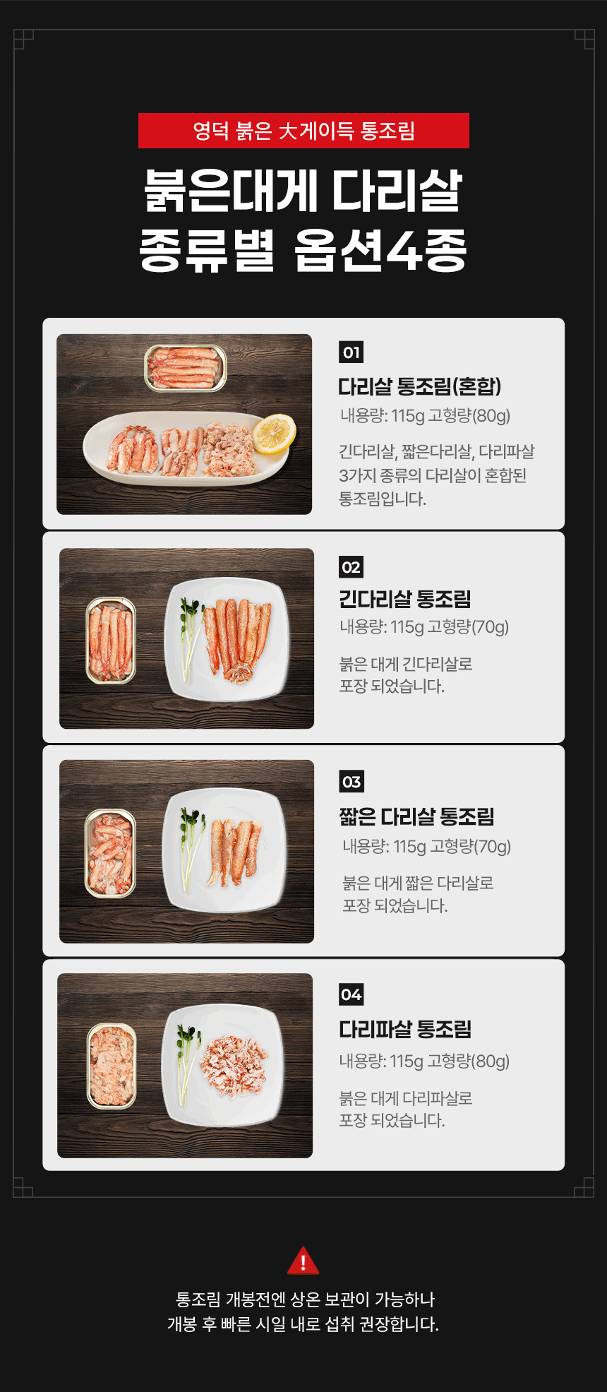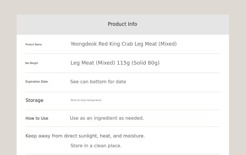 1. 🦀 Domestic Red Snow Crab Leg Meat Can - Enjoy fresh leg meat from Yeongdeok easily anytime 2. 🍽️ Convenient Ready-to-Eat Crab Meat - No peeling needed, fresh crab meat canned for convenience 3. 🎁 Discounted Gift Set Offerings - Up to 29% off with premium gift packaging available