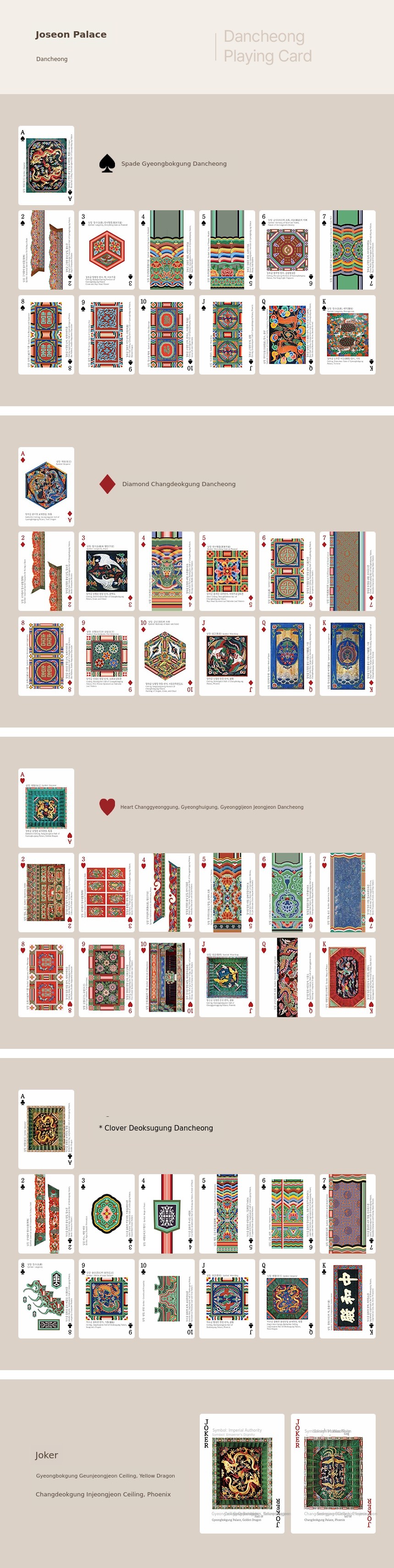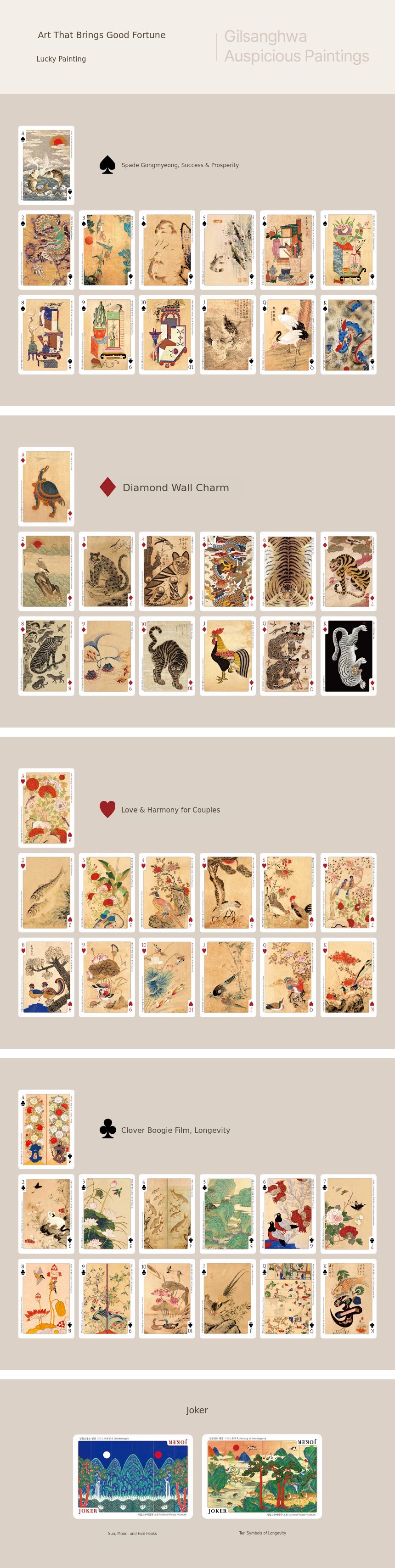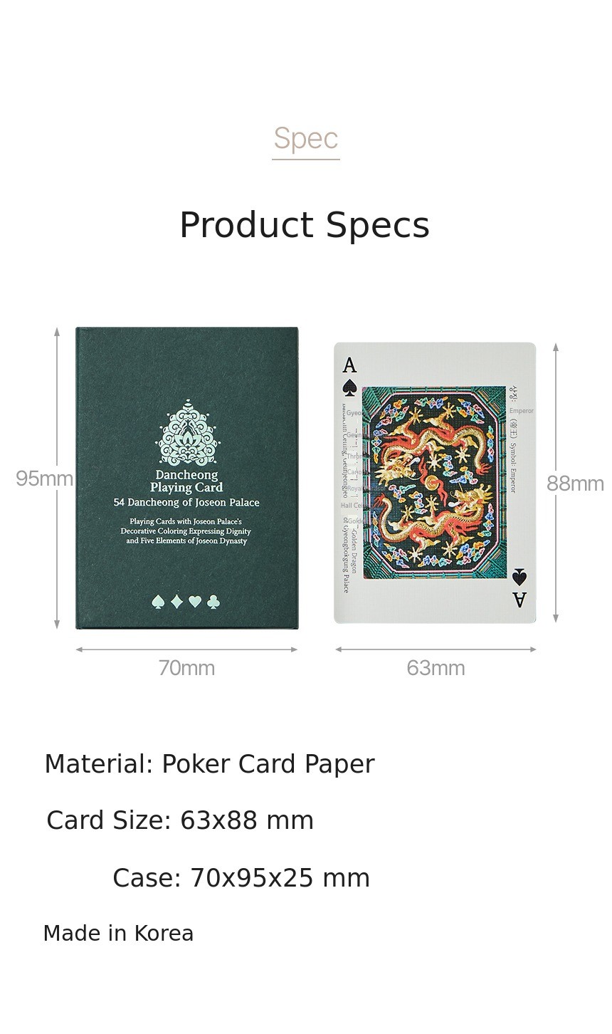 5 types of poker cards (including package box) + Irwolobongdo pouch + Minhwa spiral notebook + Dancheong ballpoint pen + Rulebook