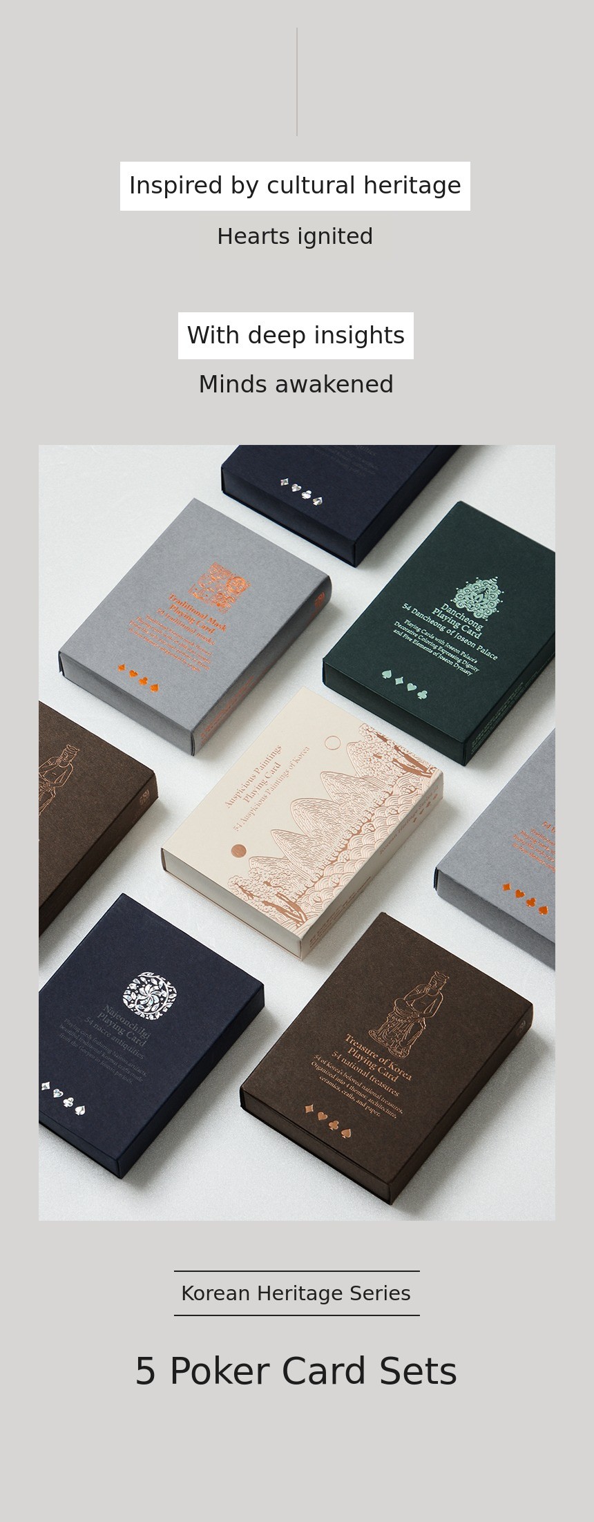 Yes, in addition to the currently released 5 types of poker cards (Gilsanghwa/National Treasures and Treasures/Joseon Palace Dancheong/Najeonchilgi/Traditional Masks), we are planning various themes such as royal court costumes. This funding is the first step in the Korean traditional culture card collection and the core project of the series.