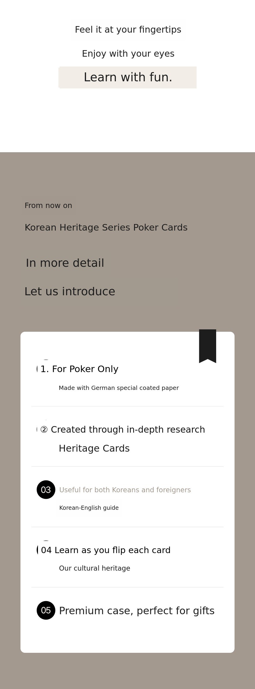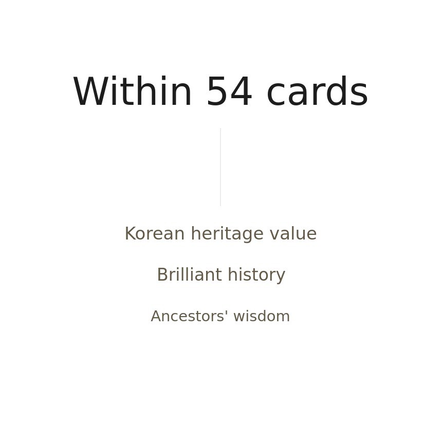 Isn't there a way for everyone to easily enjoy and naturally remember Korea's traditional culture? Everything started with this question. Rather than just an ordinary card game,we wanted to create 'an experience of appreciating cultural heritage with every card you turn'.
