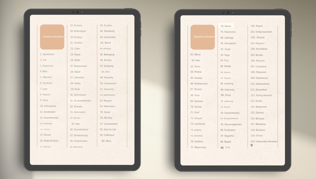 - The PDF contains hyperlinks, allowing you to freely navigate to the desired emotion page. You can search the content and print it.