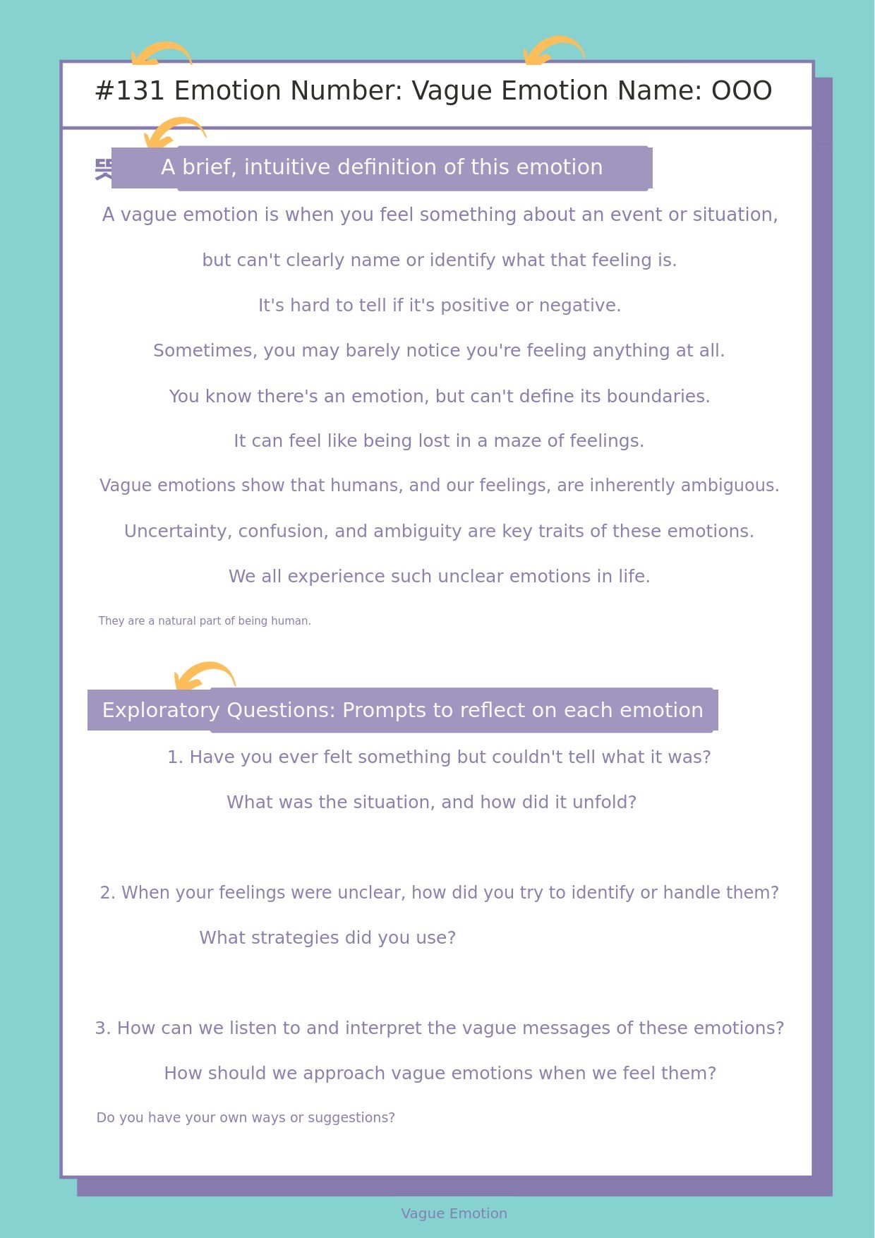 2. Exploration Questions: Consists of three questions that encourage reflection or stimulate thoughts related to each emotion.