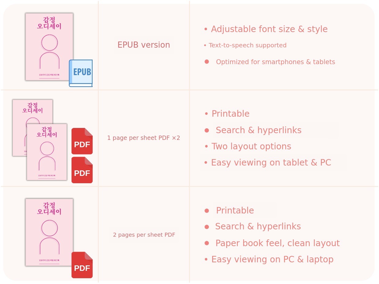 - A total of 4 files: 3 types of PDF and 1 type of EPUB