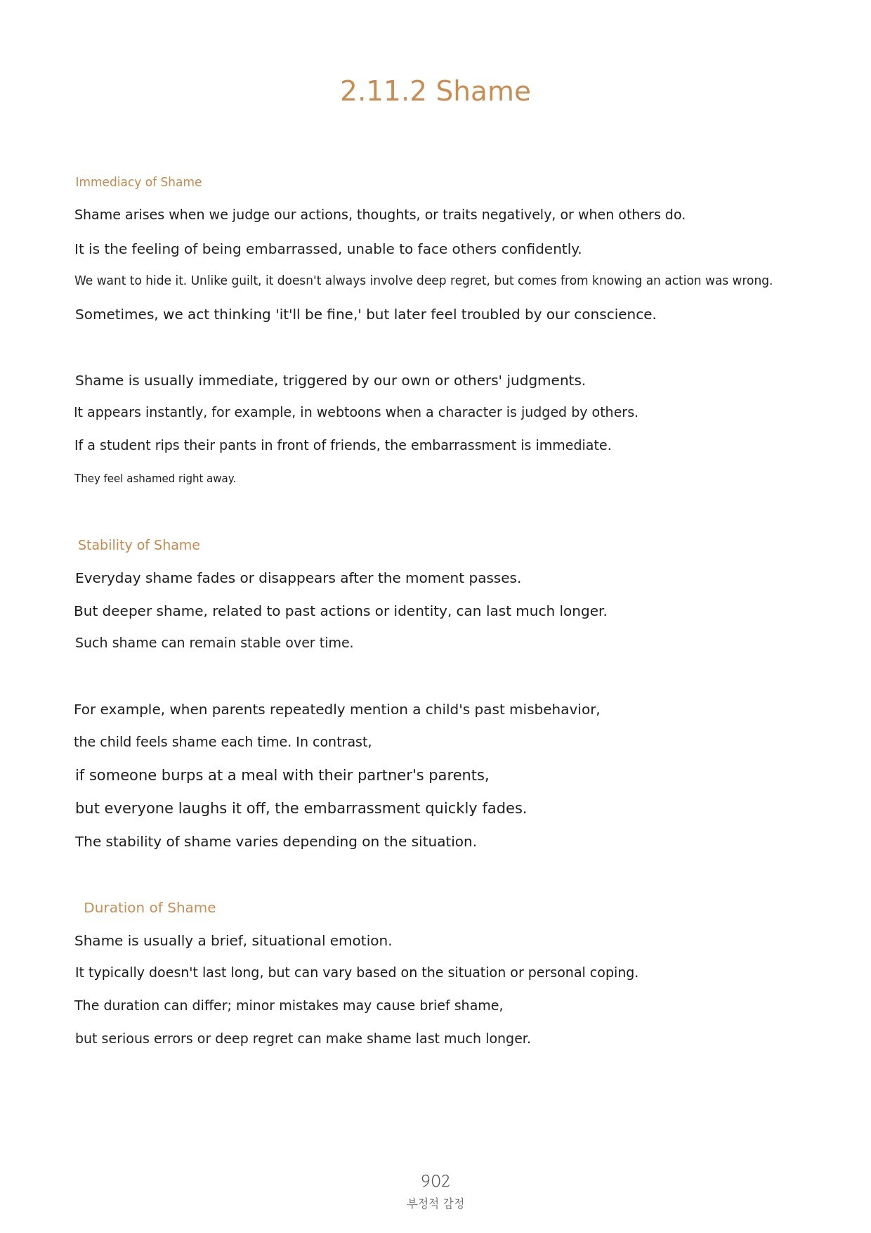 2.11.1 Embarrassment / 2.11.2 Shame / 2.11.3 Intense Shame / 2.11.4 Humiliation