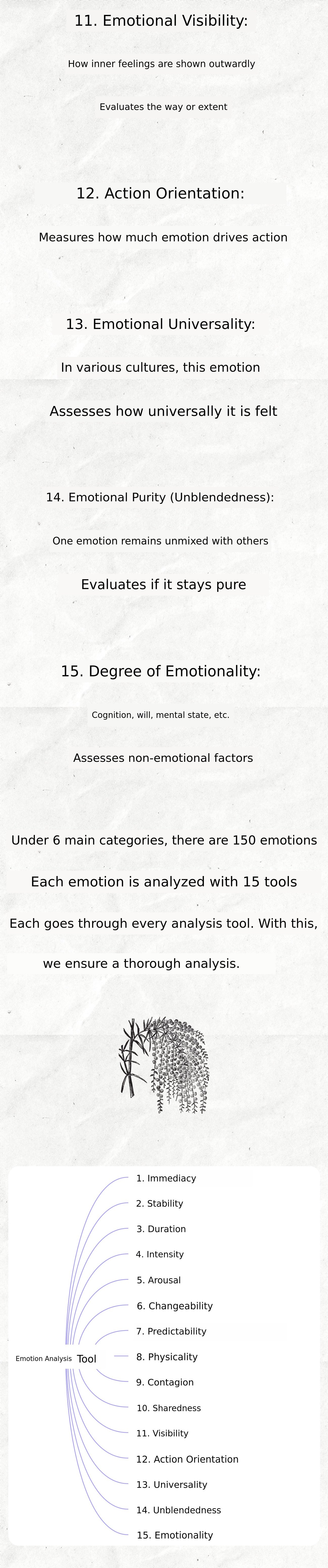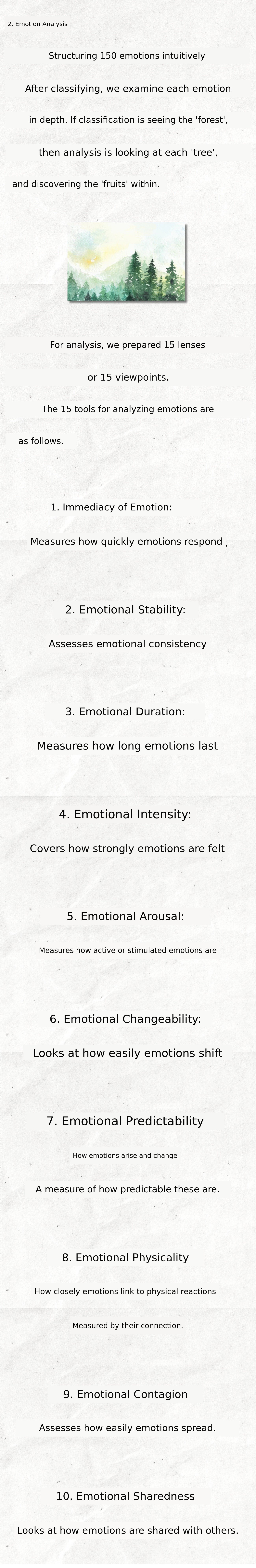 Out of 150 emotions, 60 are positive and 60 are negative, totaling 120. If these emotions are not organized, considerable confusion may arise. To solve this problem,Emotions that are very similar or have personality-related connections are grouped into sets of four to create the 'Emotion Spectrum'.