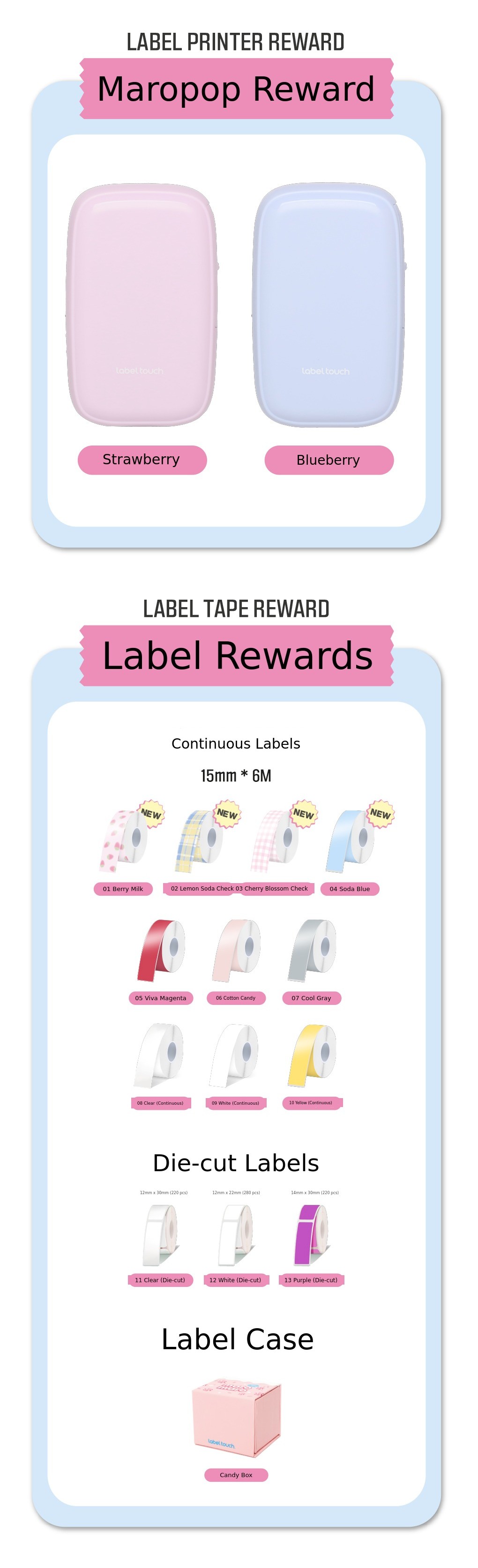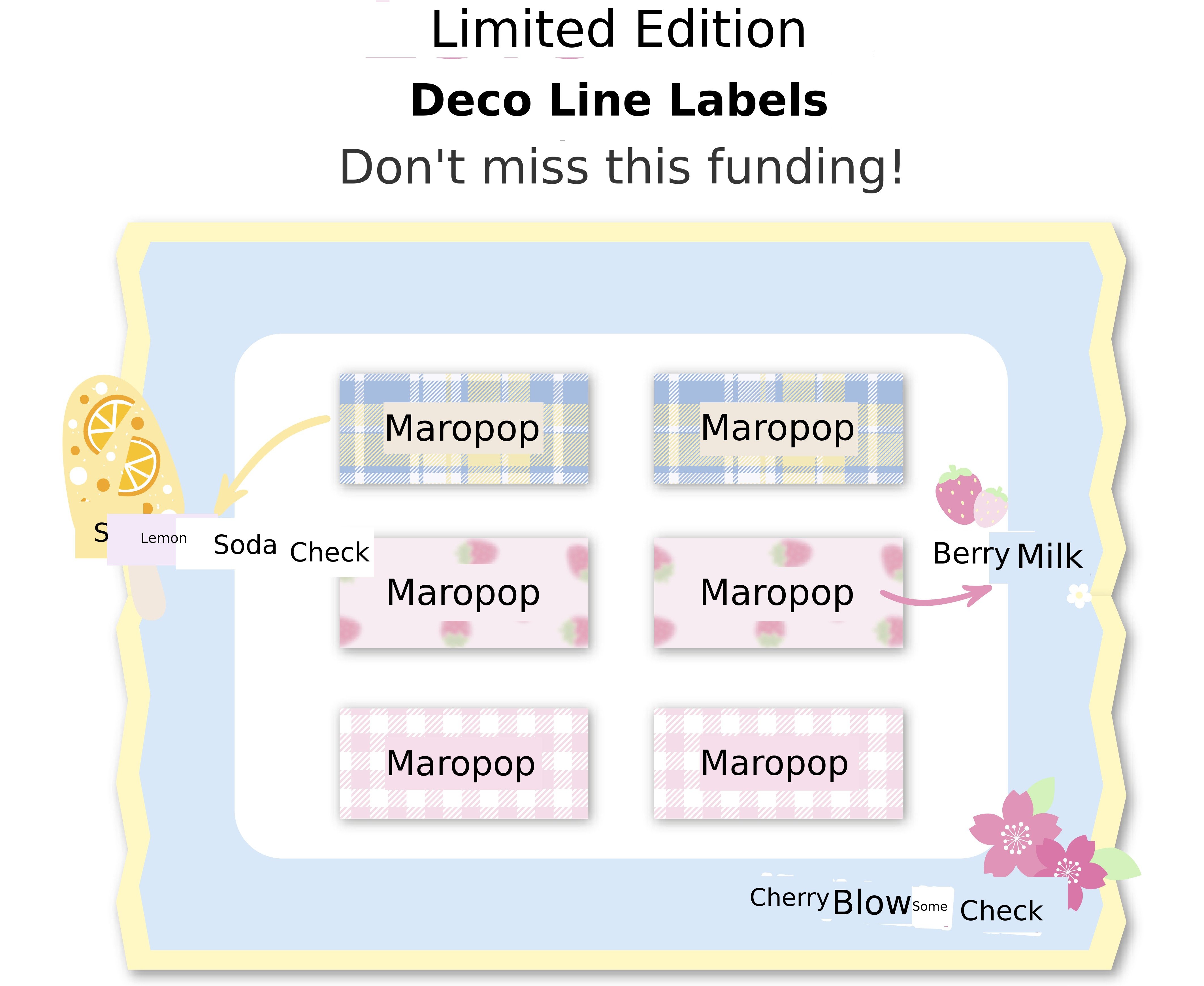 Meanwhile, in this funding, we are introducing three new tapes—Berry Milk, Lemon Soda Check, and Cherry Blossom Check—to Wadiz supporters for the first time in the world (!!). The Label Touch team will continue to design label papers in various colors and patterns. We also ask for your support in this, and we are always open to your valuable suggestions for new designs.