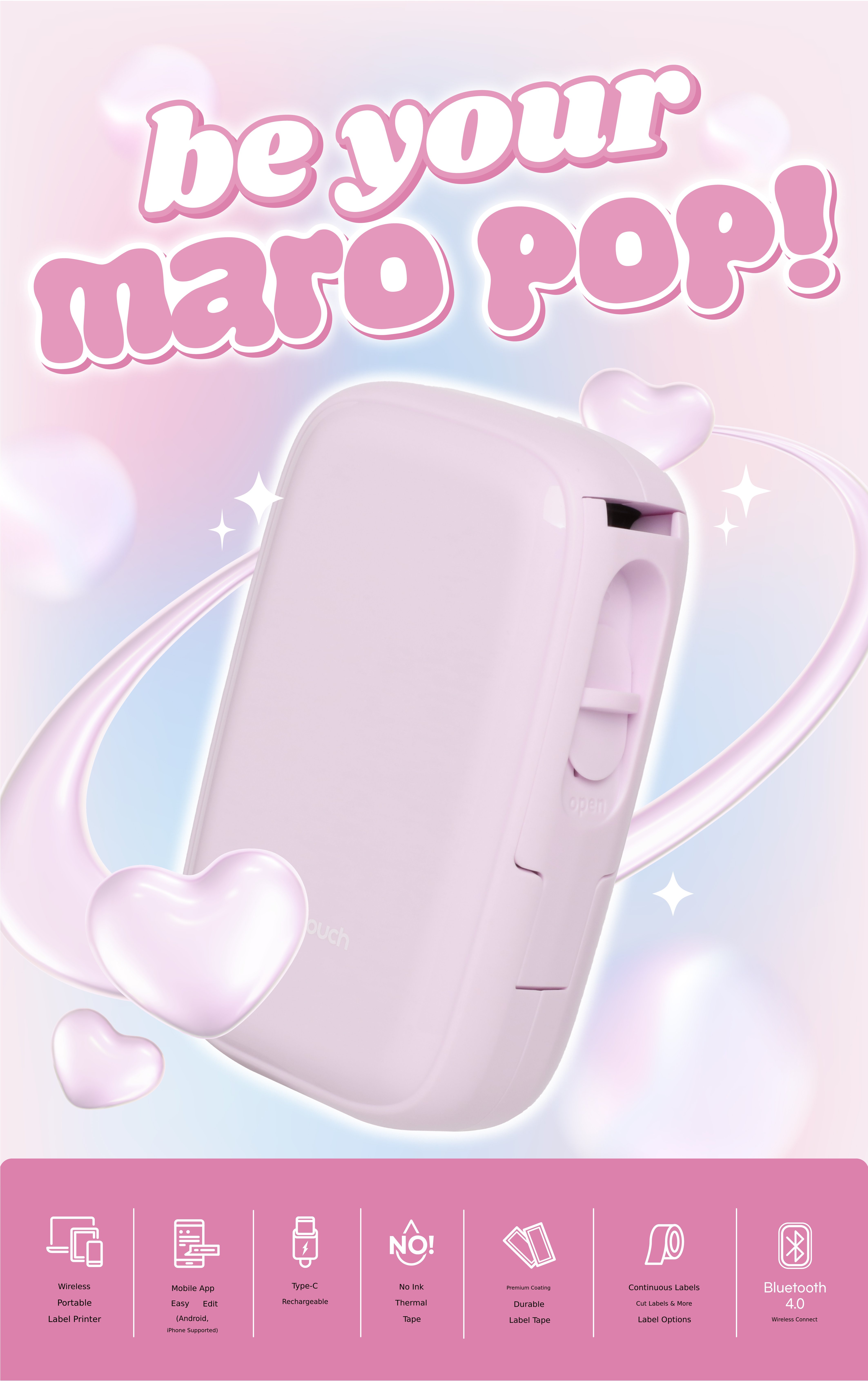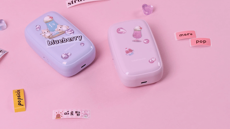 ‘Maropop,’ which has made a dazzling debut in the Maro Universe, was inspired by lollipops that bring happiness to everyone with their cool and sweet taste, reminiscent of delightful candy. ‘Maropop’ comes in tangy strawberry and blueberry colors, is designed to be smaller, lighter, and cuter to fit perfectly in one hand, yet is a label printer packed with outstanding performance.