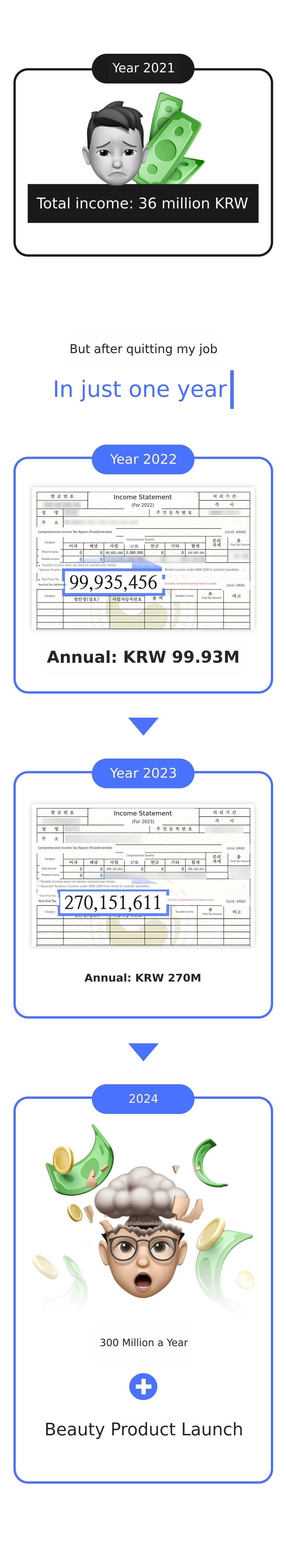 To sell my products better, I started studying advertising in earnest, and that experience has continued to this day, allowing me to generate annual sales of 270 million KRW on my own!