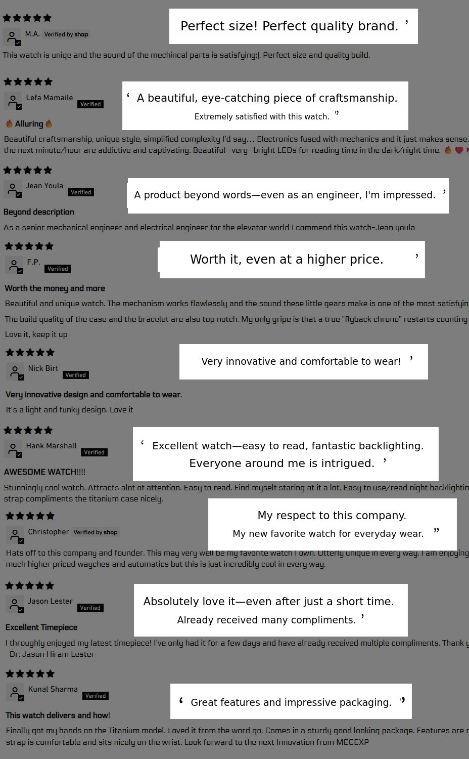 The brand MECEXP, established in 2019, was founded by Jason, who has 40 years of experience in the watch industry. As an independent watch brand covering design, research, and manufacturing, it is recognized for successfully combining modern electronic technology with traditional watch mechanisms and has been acknowledged with several awards.