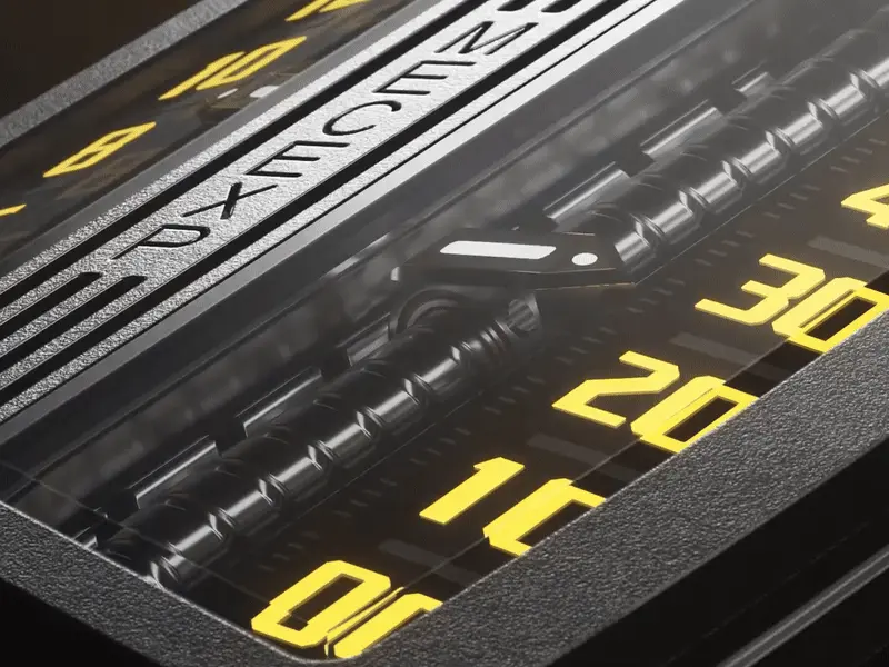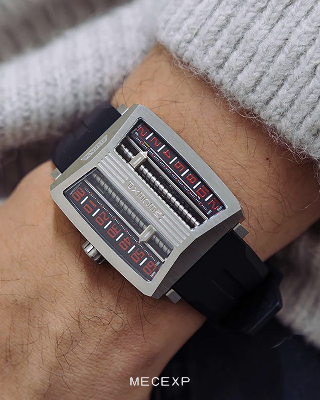 By chance, MECEXP designer Jasonwatched a 3D printer creating a model. Observing the print head precisely operating, driven by a lead screw, inspiration sprang up like a spring."I want to incorporate this high precision and reliability into watch design!" Now, you can enjoy the realization of that inspiration and innovation together with us.
