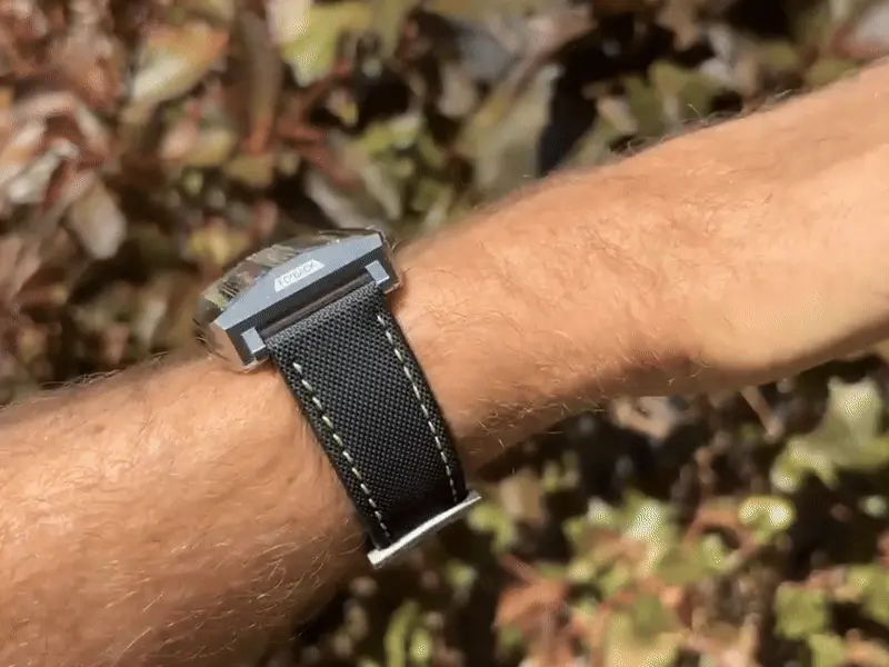 The strap's outer surface is specially processed nylon for more durable wear in daily life. The side that touches the skin is soft black cowhide leather for added comfort.