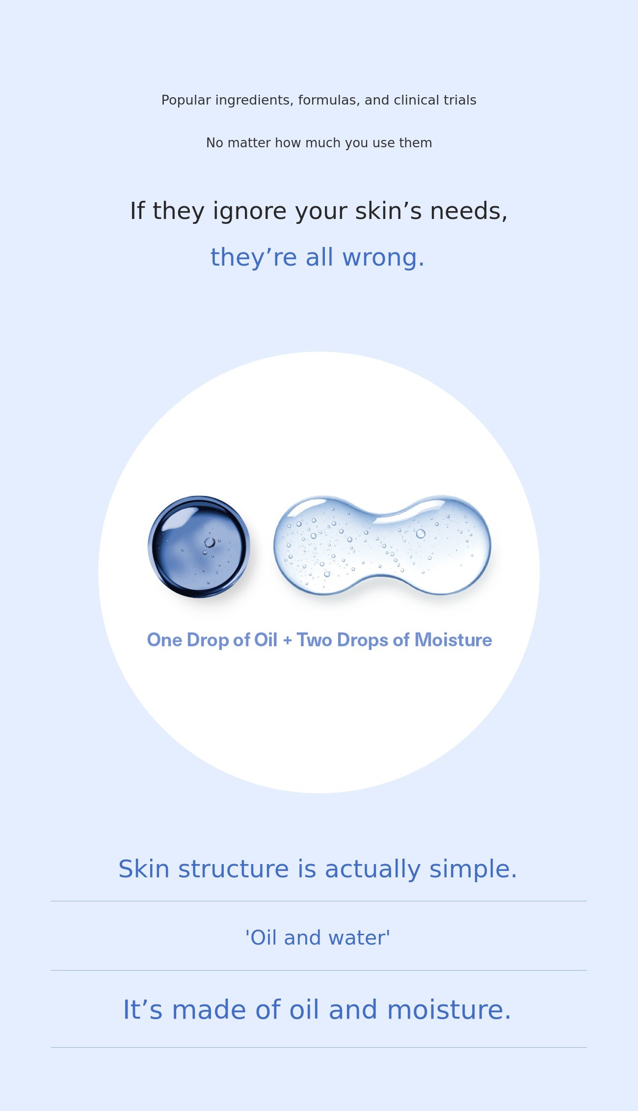 In fact, our skin structure is also simple. It consists of oil and moisture, and the ideal cosmetics follow that structure to achieve a good oil-moisture balance.
