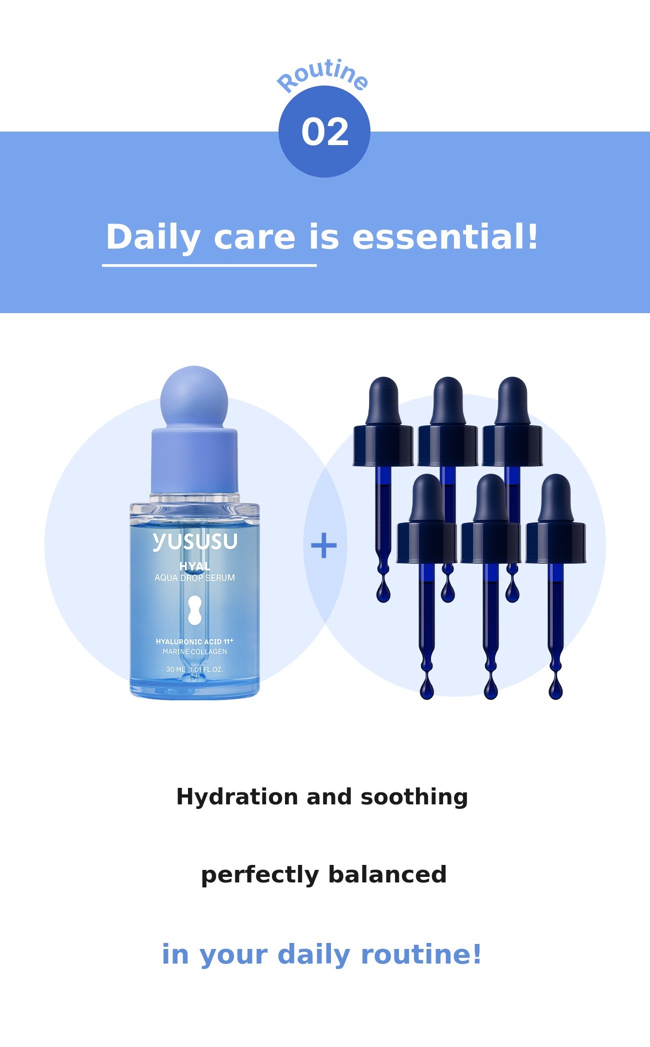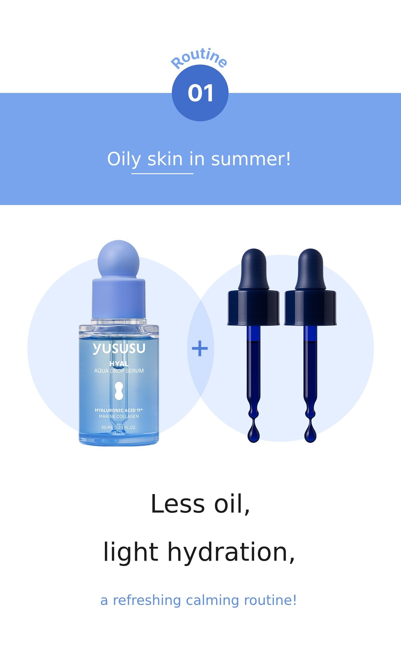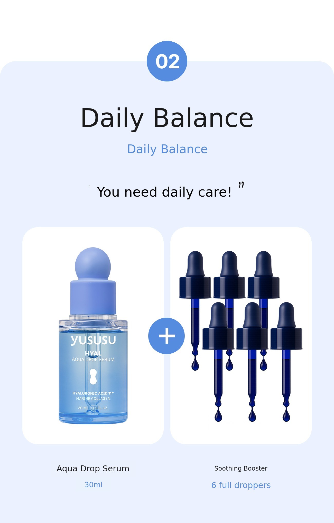 For example: Oily & morning routine: 2 droppers / Normal & daily routine: 6 droppers / Dry & evening routine: 8 droppers → If you are not familiar with skincare, we will guide you to make it easy to choose!
