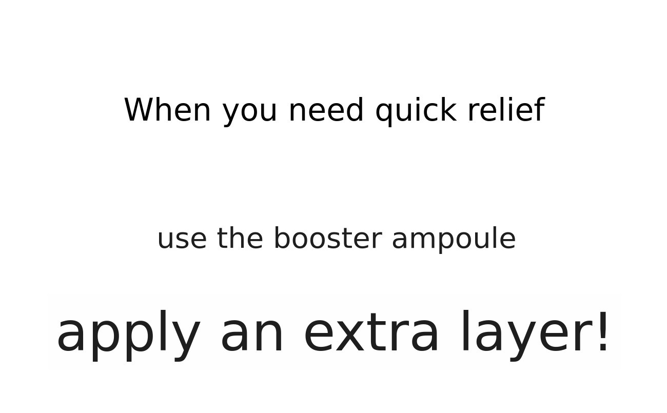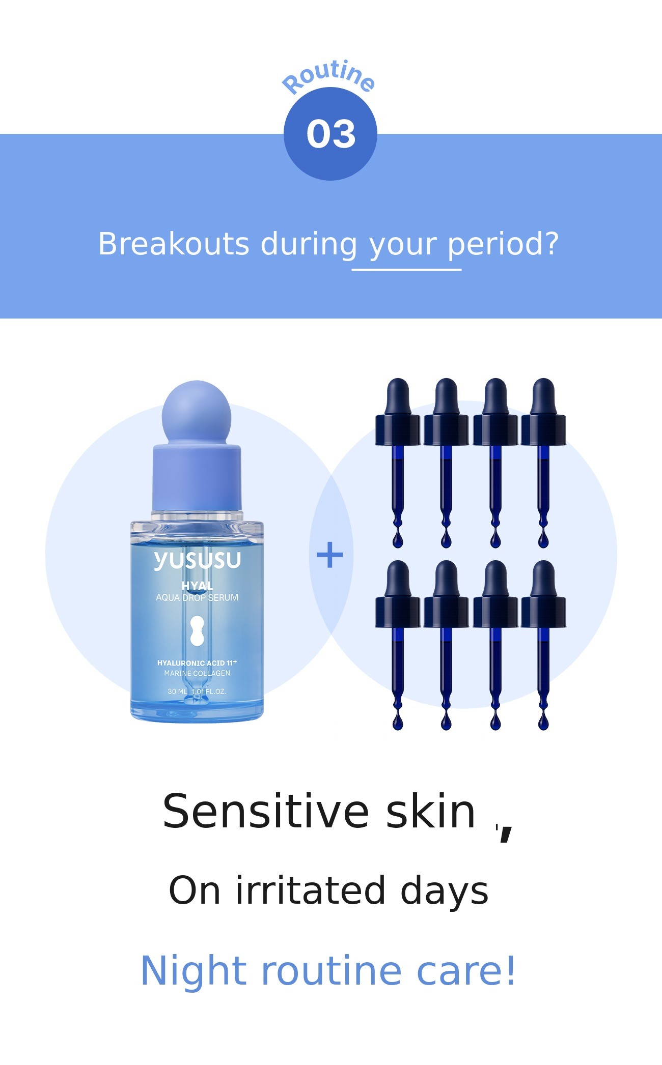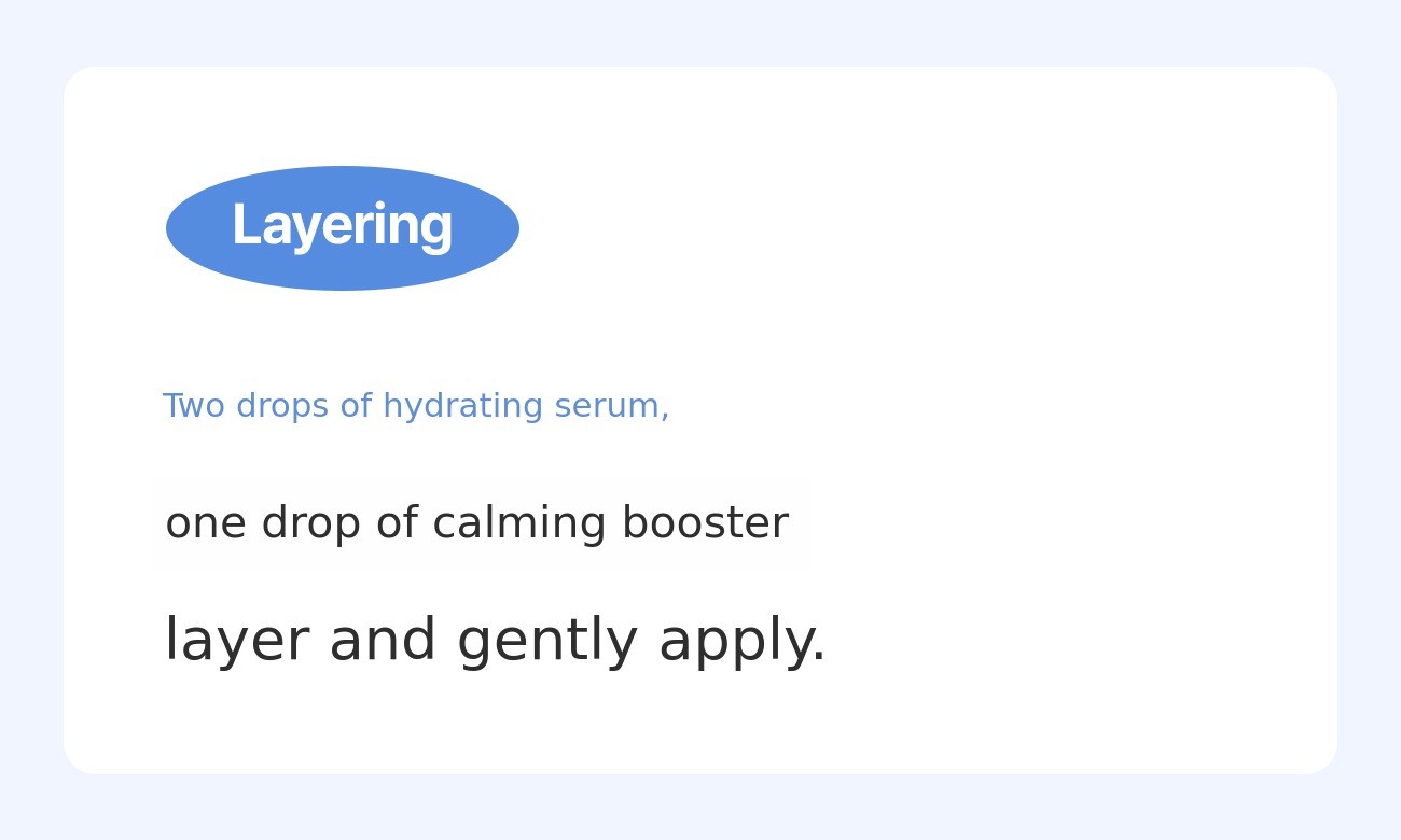 For example: Oily & morning routine: 2 droppers / Normal & daily routine: 6 droppers / Dry & evening routine: 8 droppers → If you are not familiar with skincare, we will guide you to make it easy to choose!