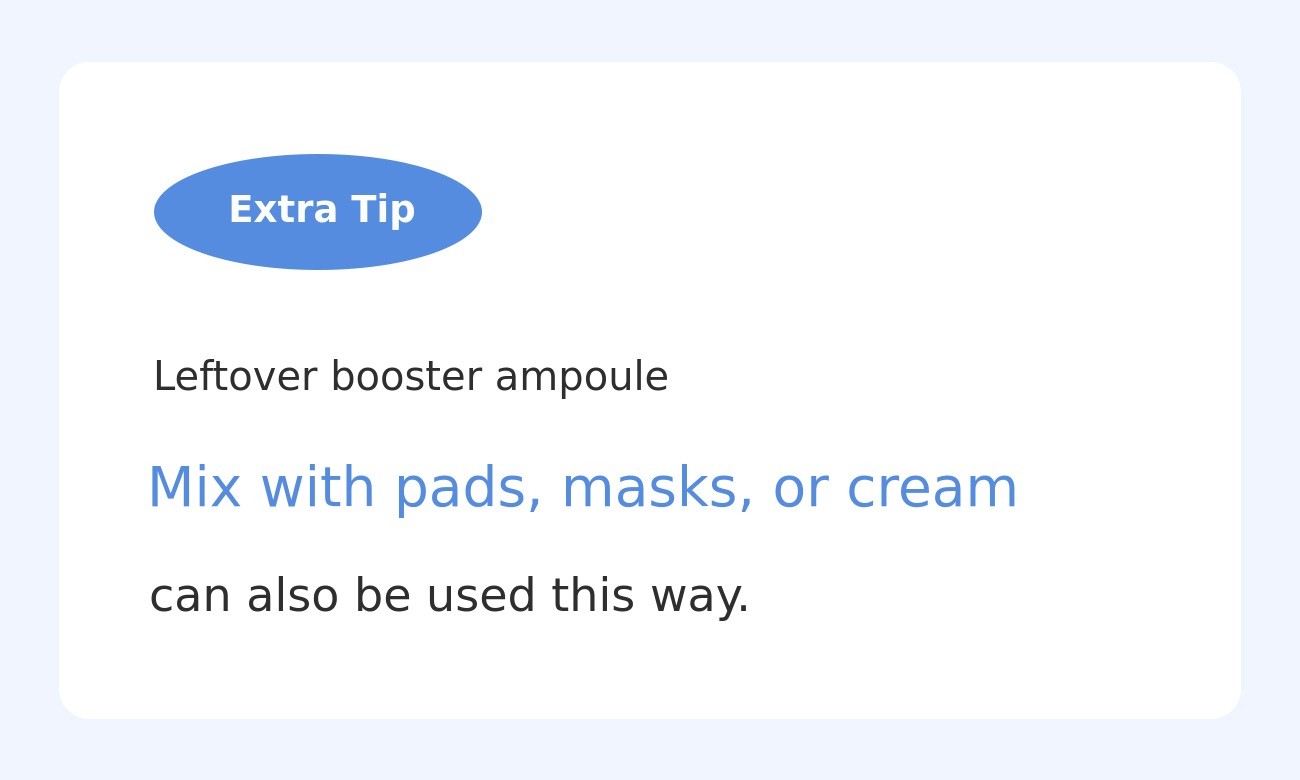 A. To ensure the ingredients are well mixed and absorbed effectively, we recommend shaking and mixing it in the container beforehand. However, if you want to combine it in various ways depending on your skin condition each day, you can layer it directly on your face or mix it on your palm or the back of your hand.