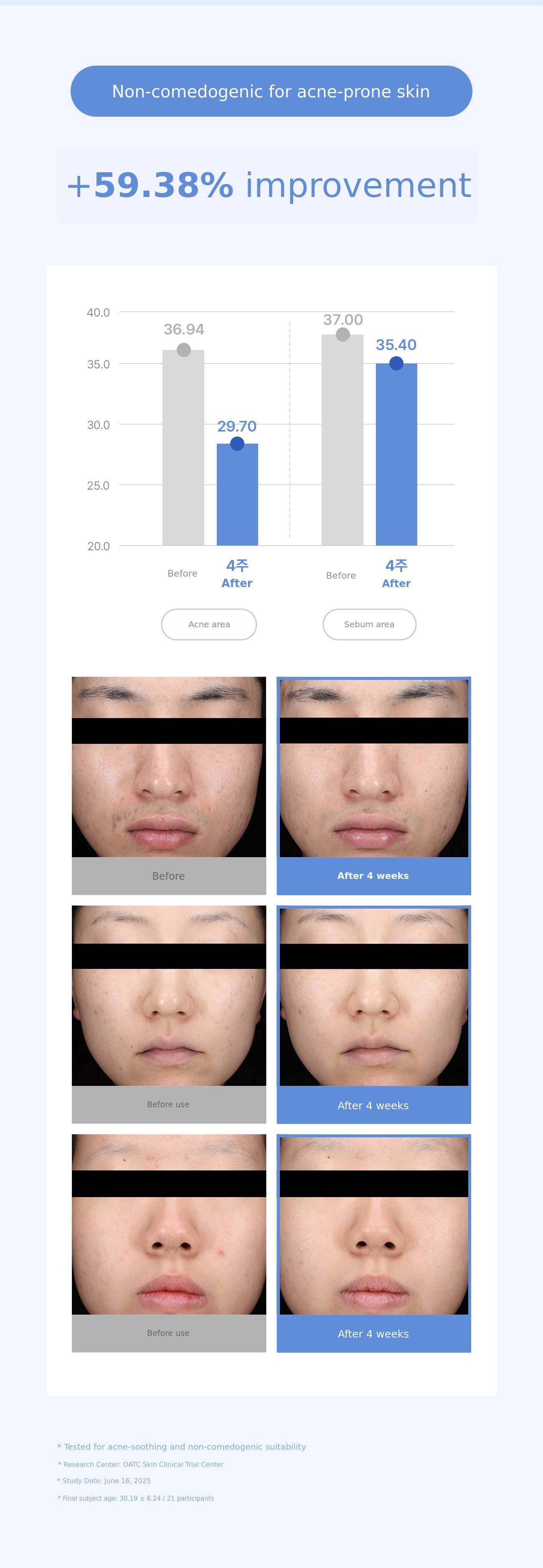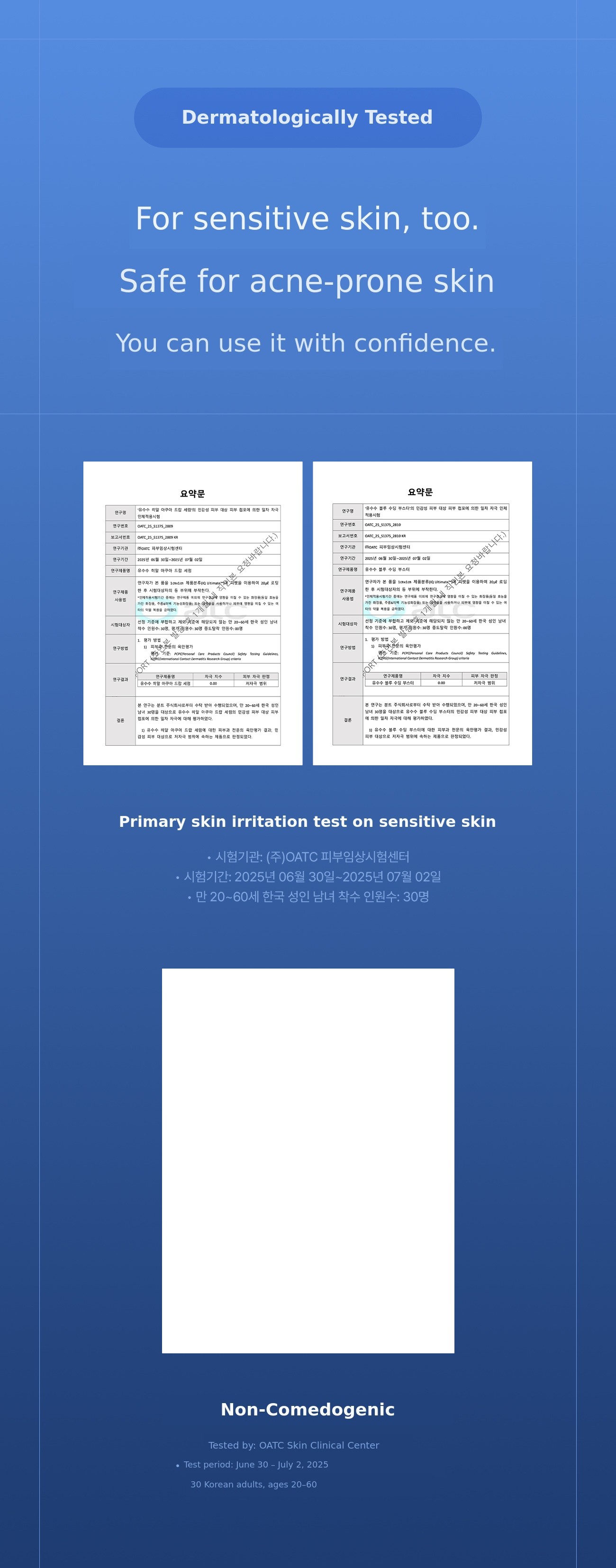 A. Yes! Yoususu has completed both non-comedogenic and low-irritation tests for sensitive skin. It is specialized for soothing without any acne-causing ingredients, so you can use it with confidence.