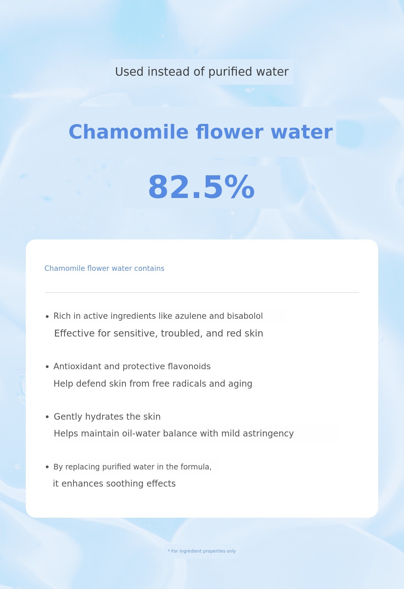 Blue Soothing Booster has been improved to gently work even on skin sensitive to oil ingredients by using sodium guaiazulene sulfonate, a water-soluble stabilized form of guaiazulene.