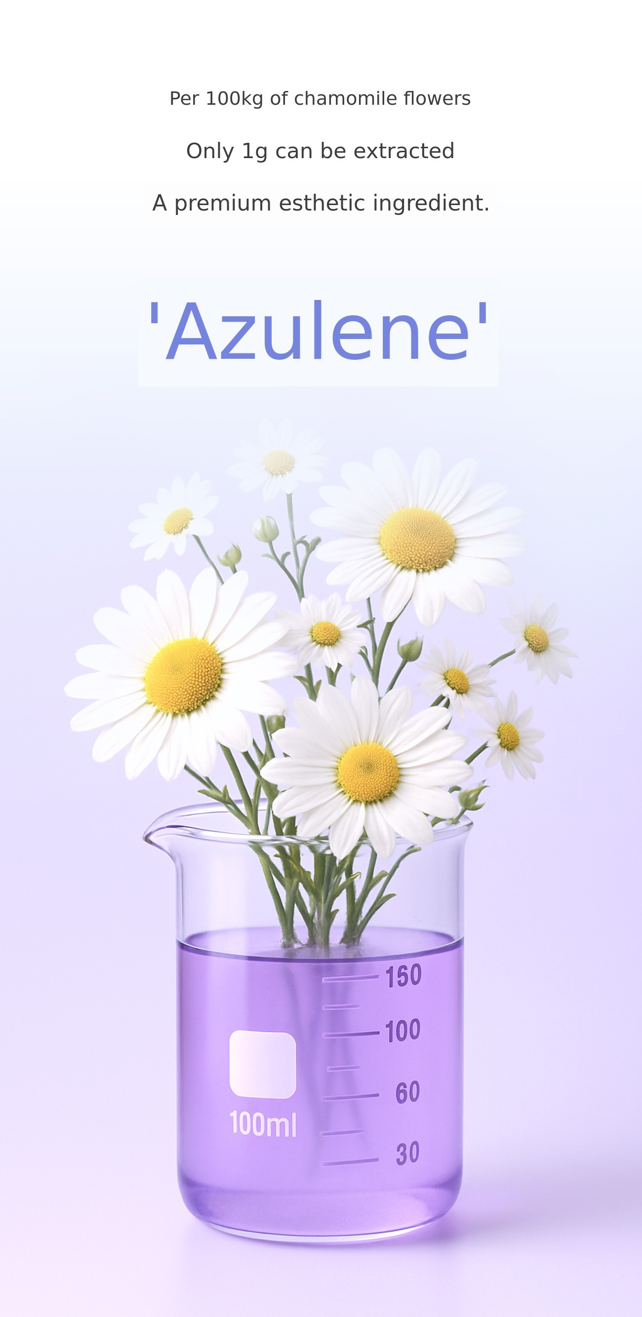 The ingredient prescribed by dermatology clinics and Cheongdam aesthetic shops for troubled skin or for those who have experienced irritation after procedures is high-purity guaiazulene extracted from natural chamomile.