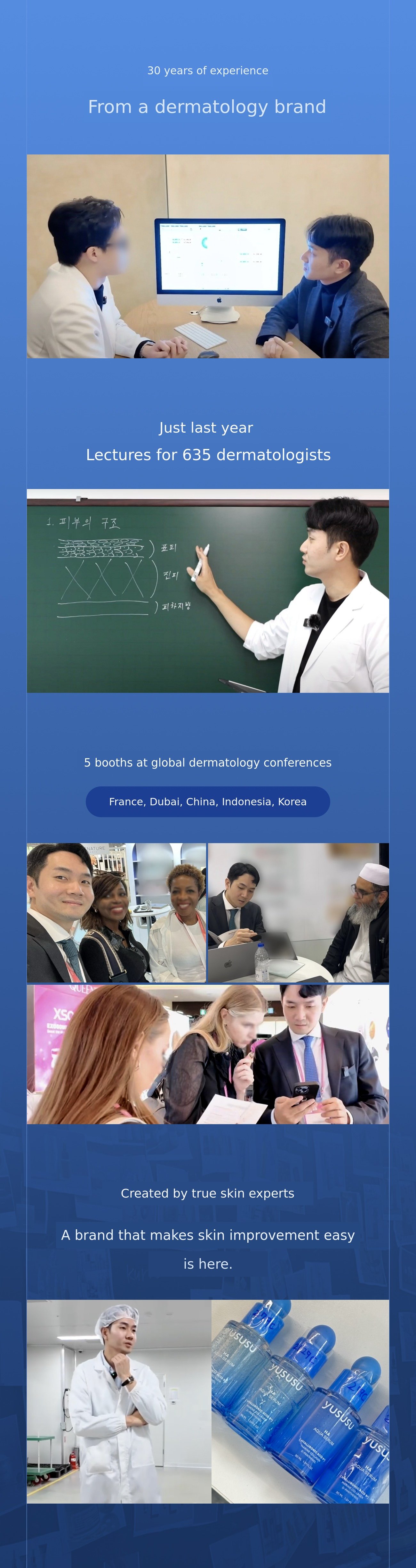 Last year alone, after business trips to 10 countries, lectures to a total of 635 dermatology doctors at home and abroad, and operating booths at five global dermatology conferences (France, UAE, China, Indonesia, Korea), we realized that dermatology-specialized derma brands are still difficult. In other words, the way of communicating with consumers is one-way and closed.