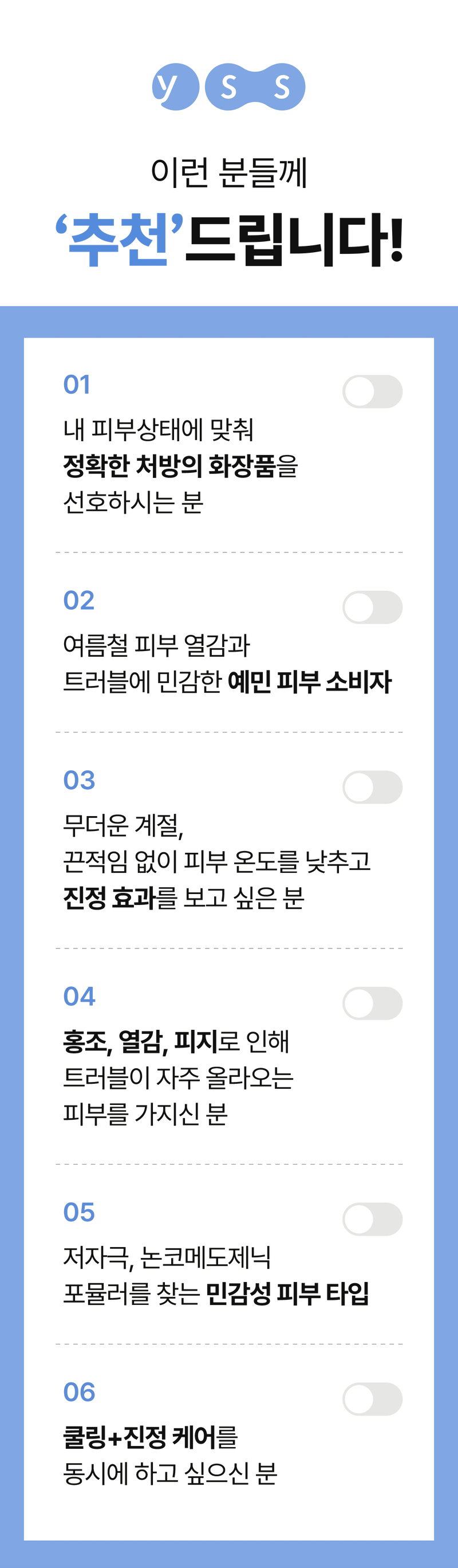 In an era where everyone talks about derma, what is often overlooked is 'how my skin is right now.' Yususu starts from the sense that I know my skin best and proposes personal derma, active derma that resembles me.