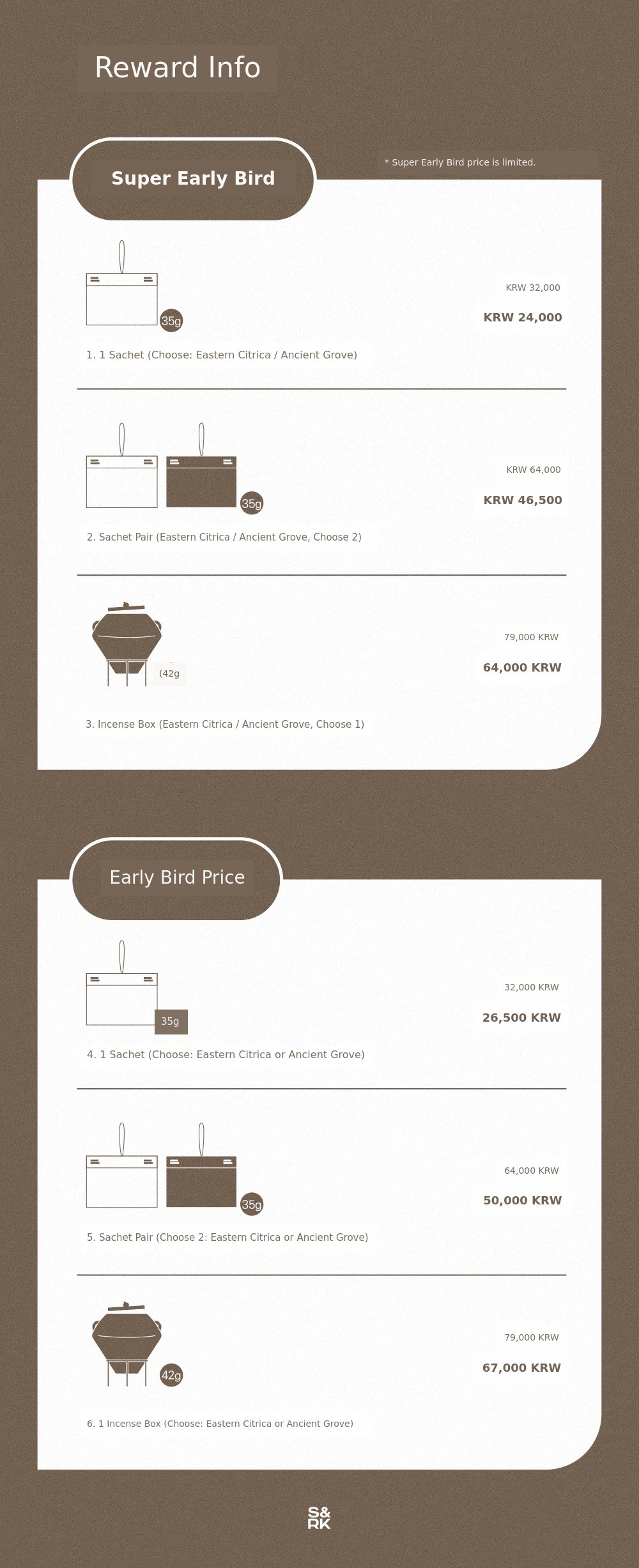 The rewardcomes in two types(hanger sachet, stand-type incense box) andtwo scents(citrus, woody) from which you can choose.