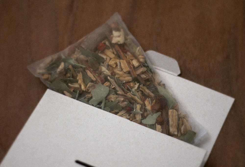 Palo Santo, rosemary, frankincense, and othernaturally original scents of raw materials are blended into the dried herbs, harmonizing with delicately blended fragrancesfor adeeper scent. Creates.
