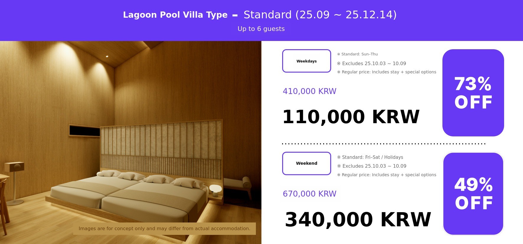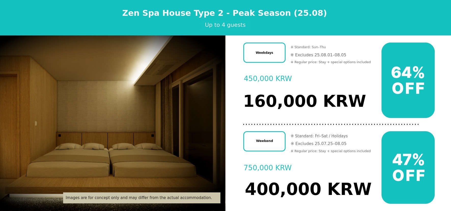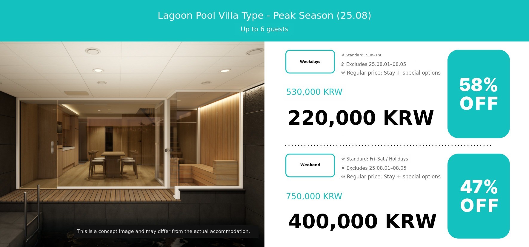 | Private Open-air spa | Once | 50,000 KRW | 25,000 KRW | Number of guests If you wish to proceed |