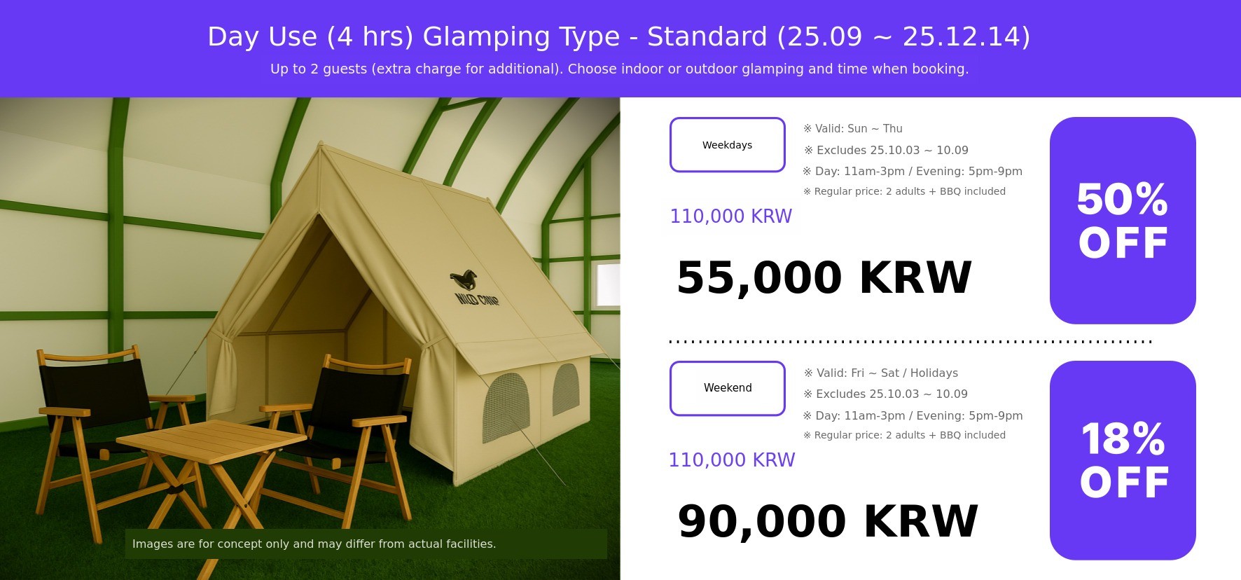 ( Not applicable to Day-use Glamping Type )