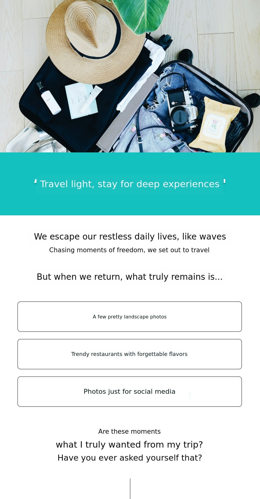 We thought about [ travel experiences ] that last.