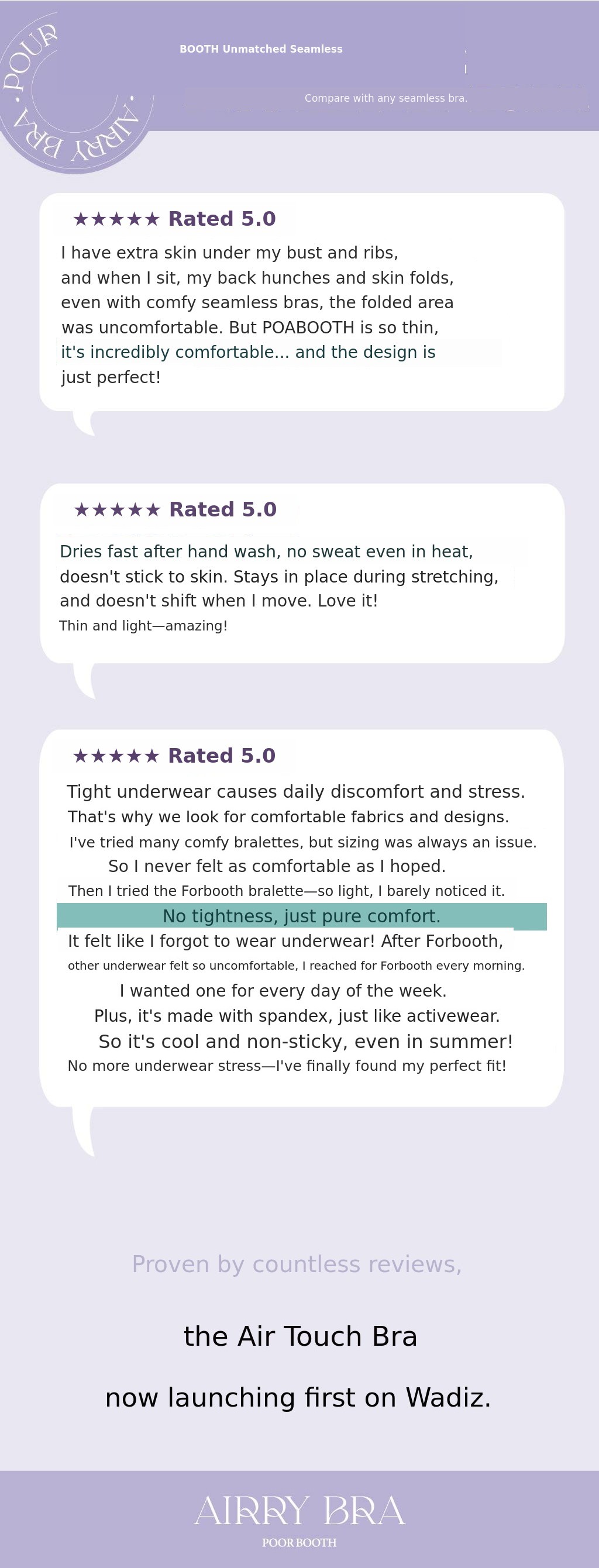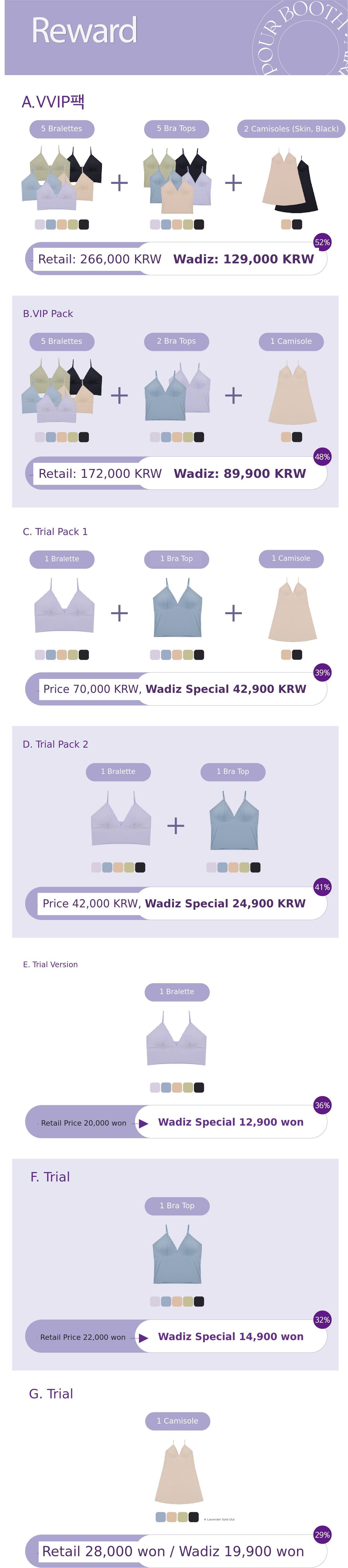 Hello. I am Jin-Young Kim, CEO of Forbooth. I majored in women's clothing design and have extensive experience in various manufacturing industries. Utilizing this experience, I believe our company's greatest strength is being able to incorporate my expertise into underwear design. Our company has specialized in the production and distribution of underwear for 15 years. After much consideration of know-how, price, and quality, we are presenting our product on Wadiz for the first time. While handling distribution for many companies, we have been striving to create the most fun and interesting underwear products and culture for women.
