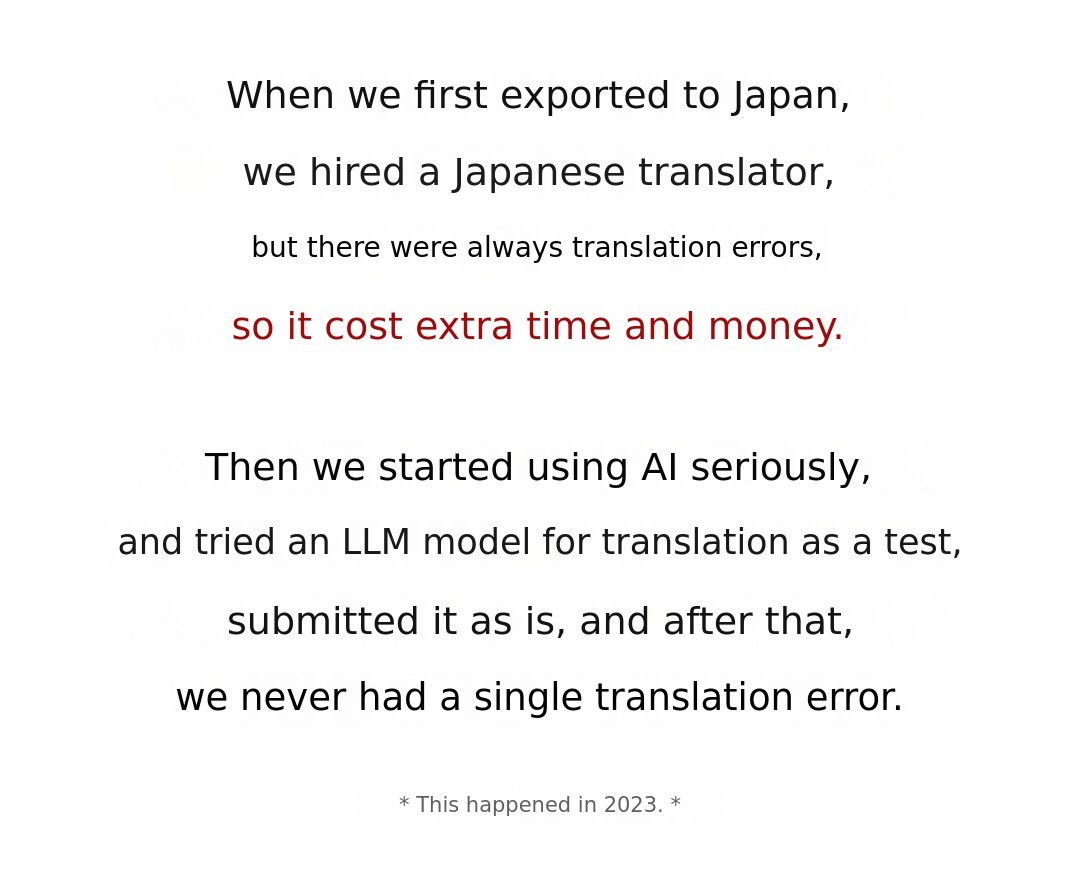 Our two CEOsWorld-renowned AI institution, Zhejiang University (Ranked 6th globally) Worked alongside AI technology leaders like the founder of Deepseekand learned the unique spirit of collaboration called 'Podan Entrepreneurship (抱团创业)' I learned. After returning to Korea and going through countless projects over five years, we gained one certainty.