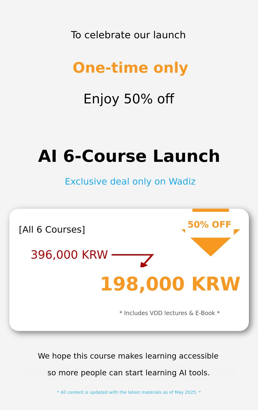 After this early bird funding is successfully completed, all lectures will be available at our official store of Smartfork Co., Ltd.. Therefore, it is a good idea to try one lecture first, and if you are satisfied with the content, you can purchase additional lectures.