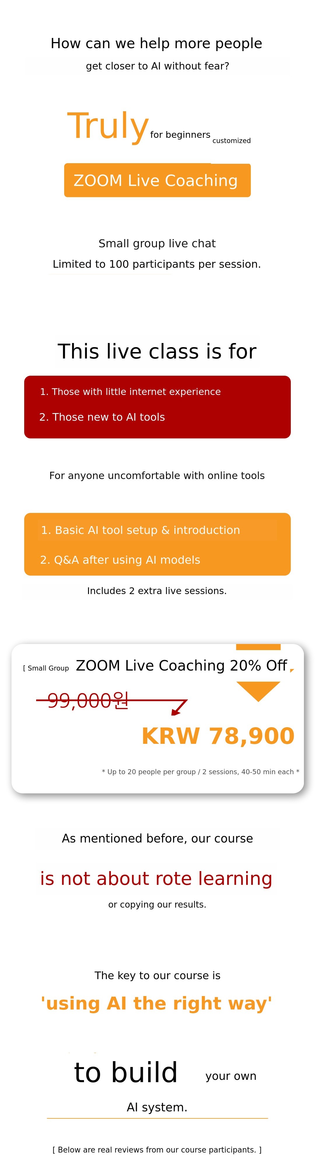 Let us remind you once again. All content covered in this coaching is basically included in the VOD lectures and E-Book. If you are able to sign up and operate on your own, you do not need to apply. This coaching is a special program designed only for those who want to overcome the uncertainty of starting, gain confidence, and fully focus on the main course.