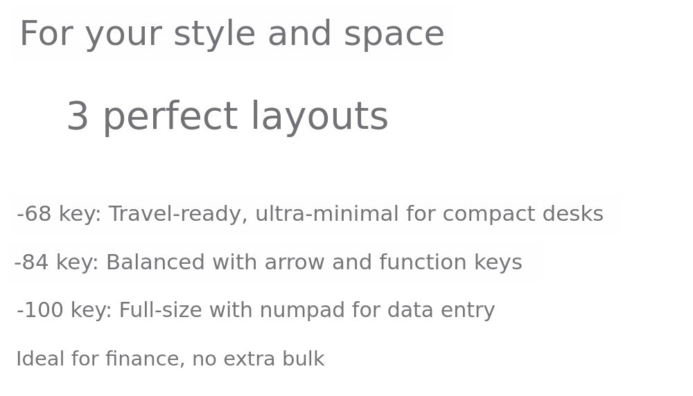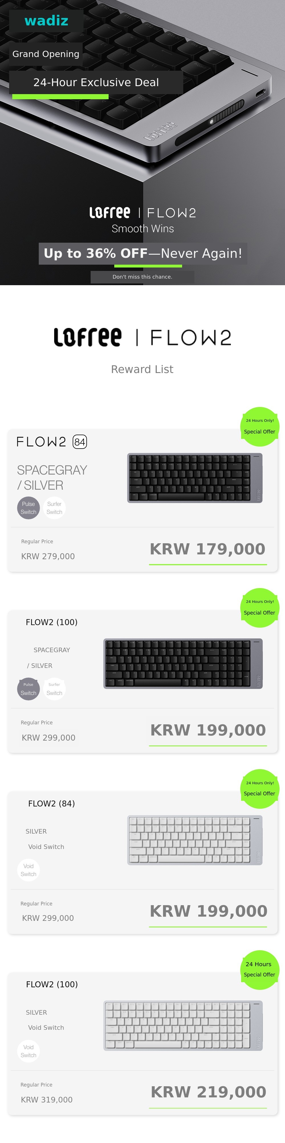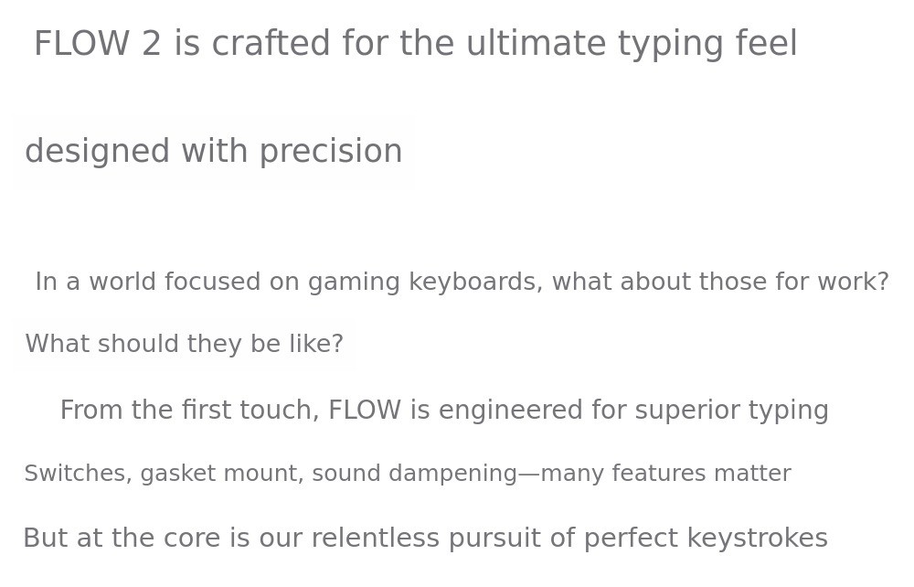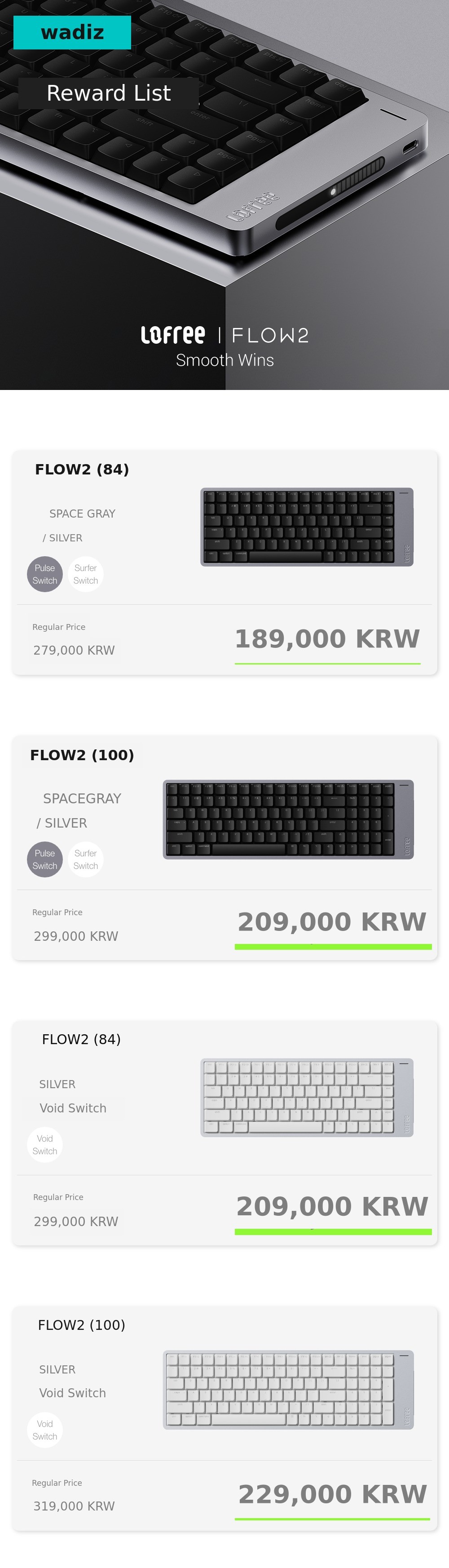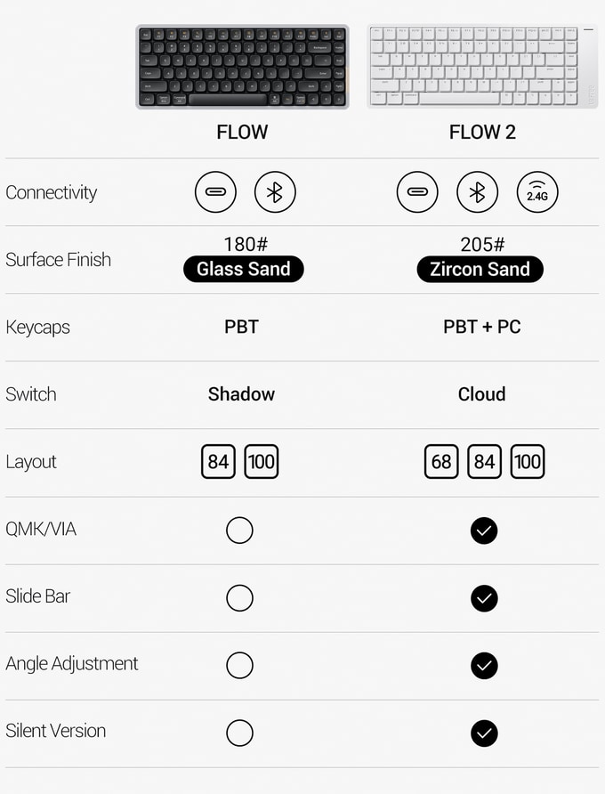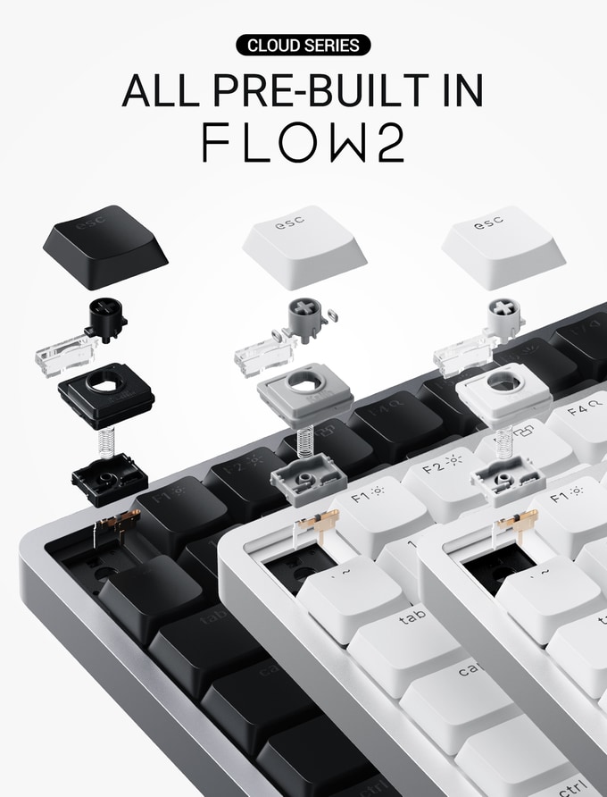 Full CNC aluminum body / Premium design / Crowd Series switch / 3 layouts / Touch bar / VIA / Gasket mount - FLOW 2 adds perfection to everything.