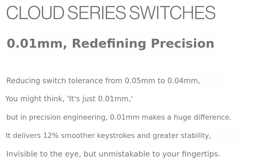 Now,Cloud Series Silent Switch (Void) maintains that 'silence' while adding a firmer bottom-out feel, offering you more options.