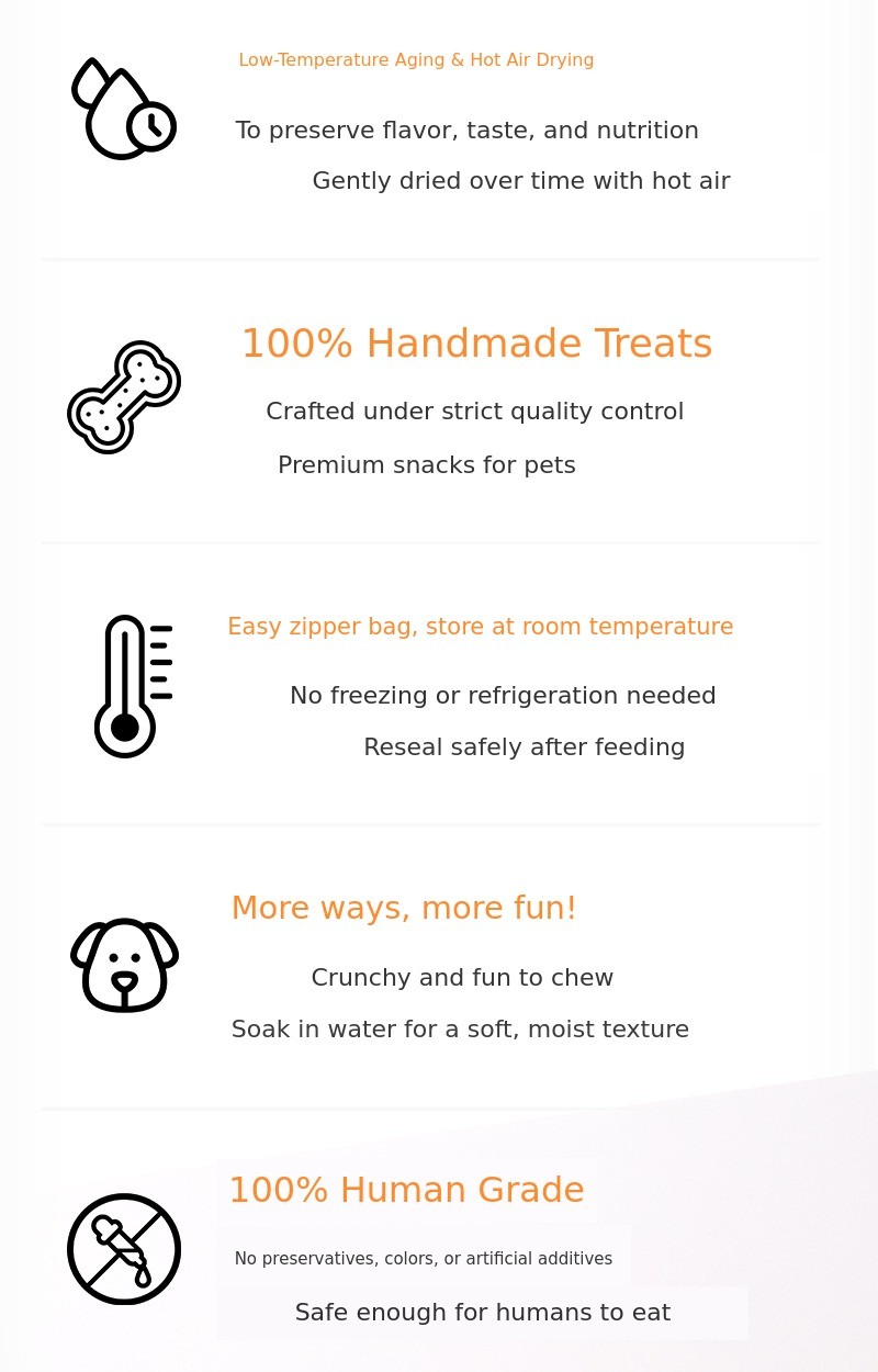 To ensure guardians can choose with confidence, we prioritize quality and health, providing snacks essential for dogs.