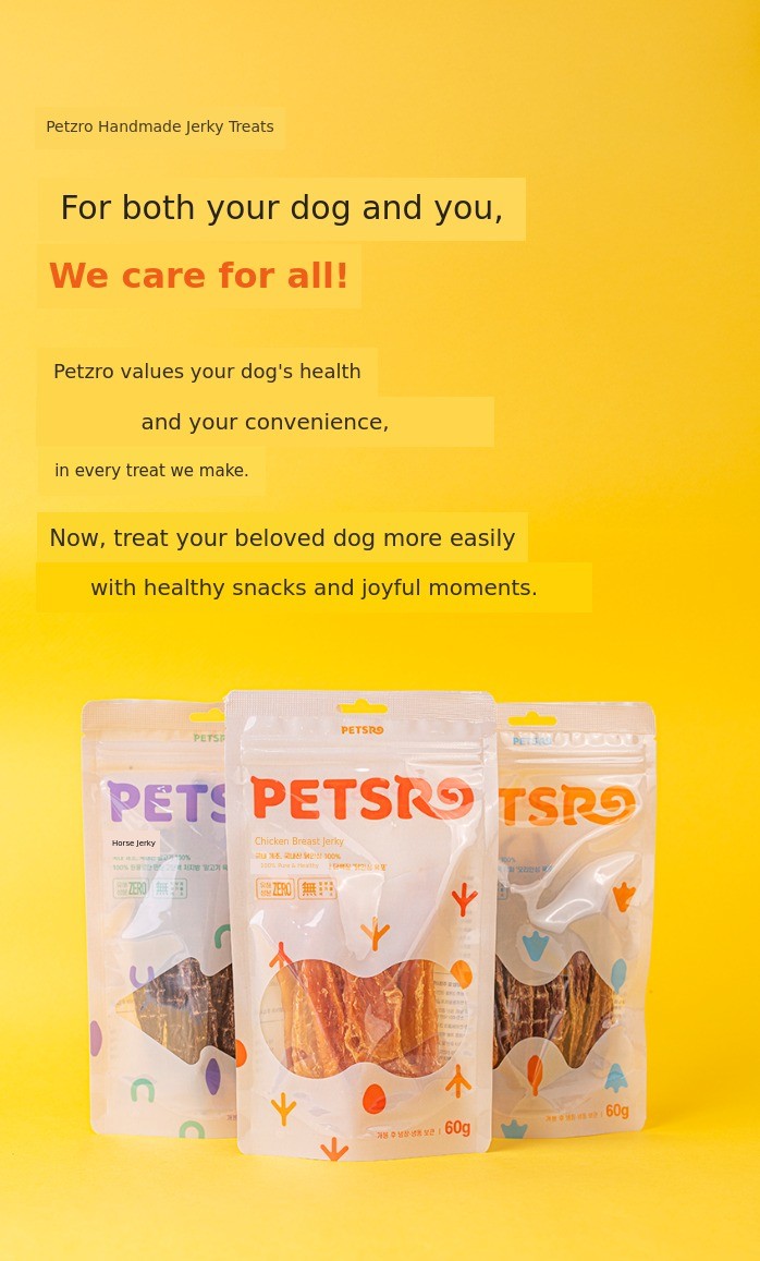 Petsro's treats are honest, handmade snacks created with the heart of 'giving treats to a precious family member.'