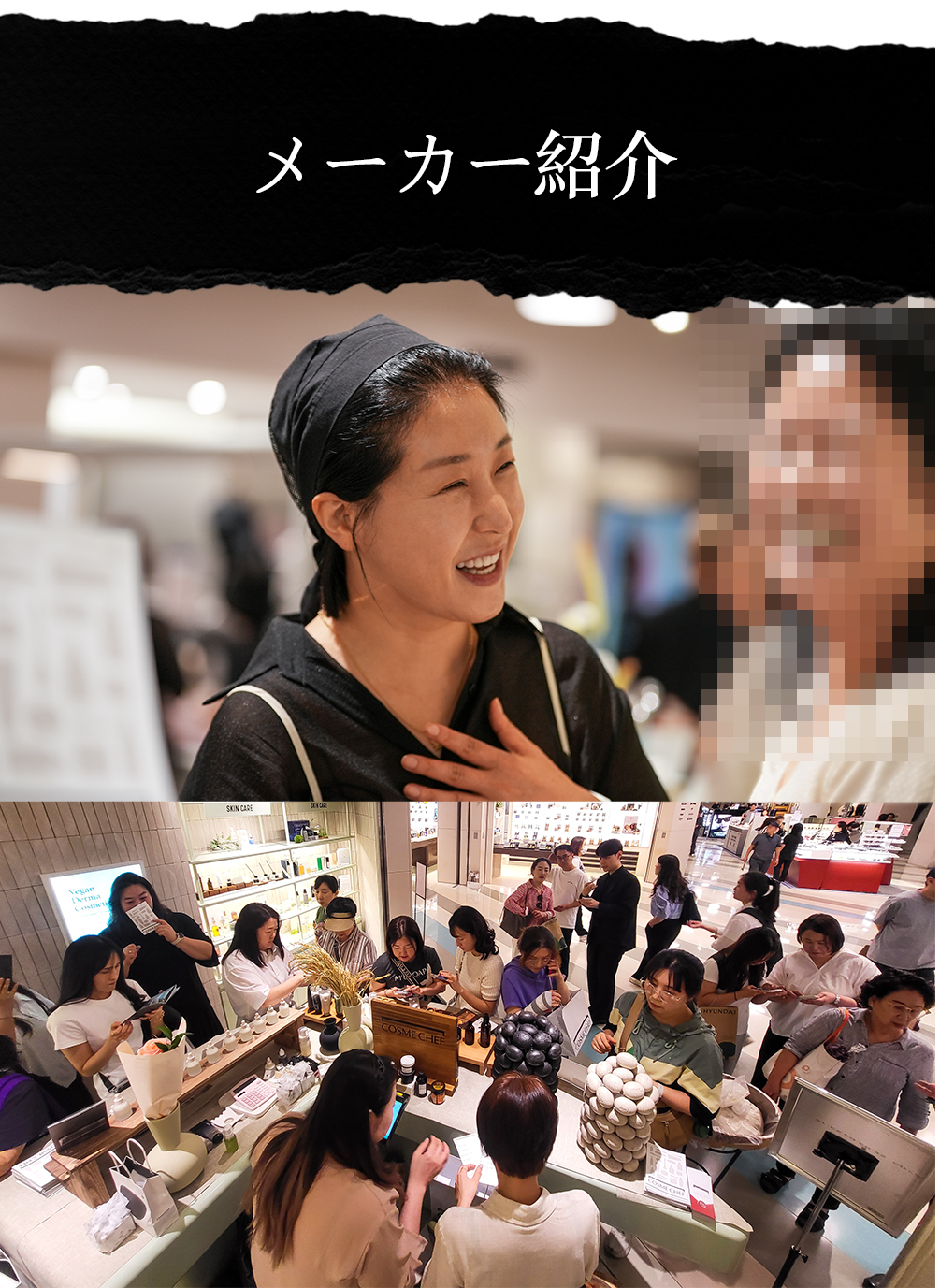 この場でずっと新製品を披露し、いつも前に進む 素敵なサポーターさんたちと「一緒」の意味を作り上げたいです。コスメシェフの哲学と真心を、みなさんとともにこれからも