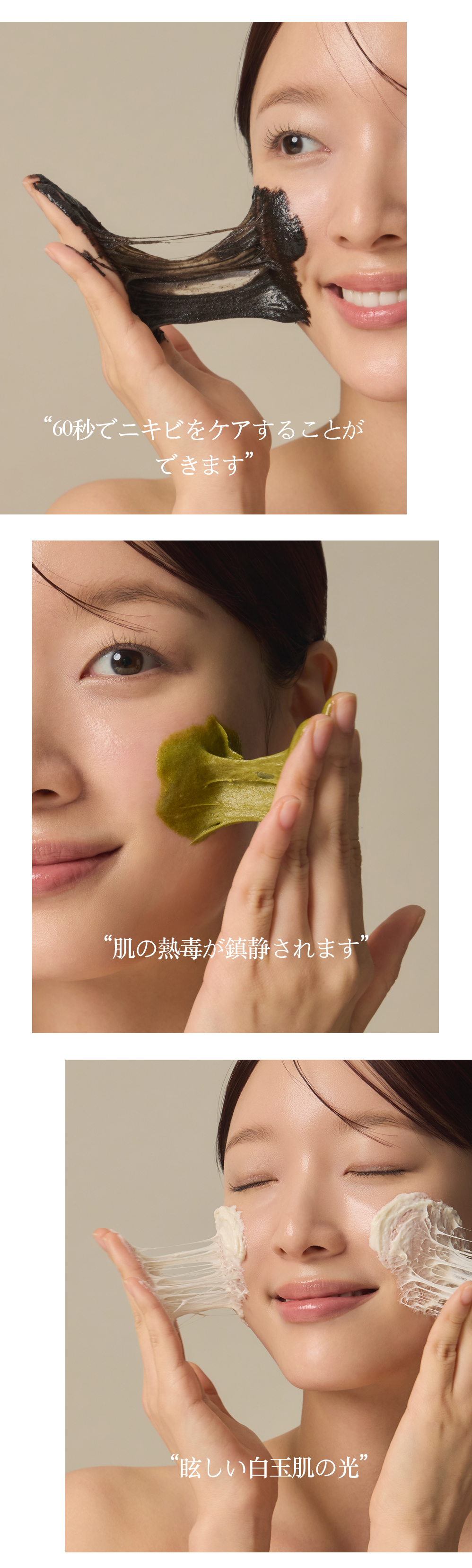 たった60秒でクレンジング、角質ケア、栄養補充、鎮静までケアできる3種のフォーミュラ