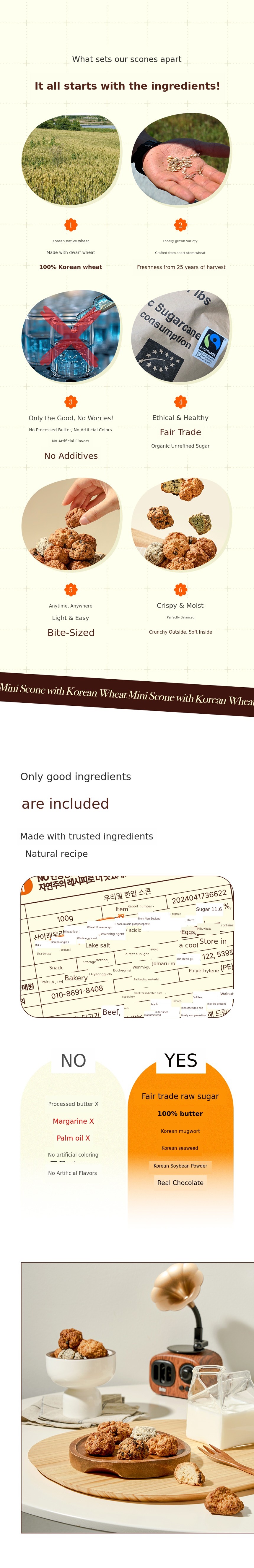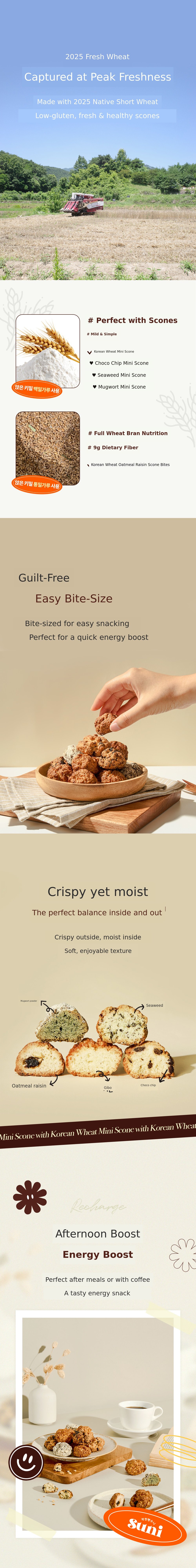 The bite-sized scones we've prepared this time are, of course, delicious desserts, but above all, they are special products designed to let you experience the freshness and flavor of freshly harvested native Korean wheat.