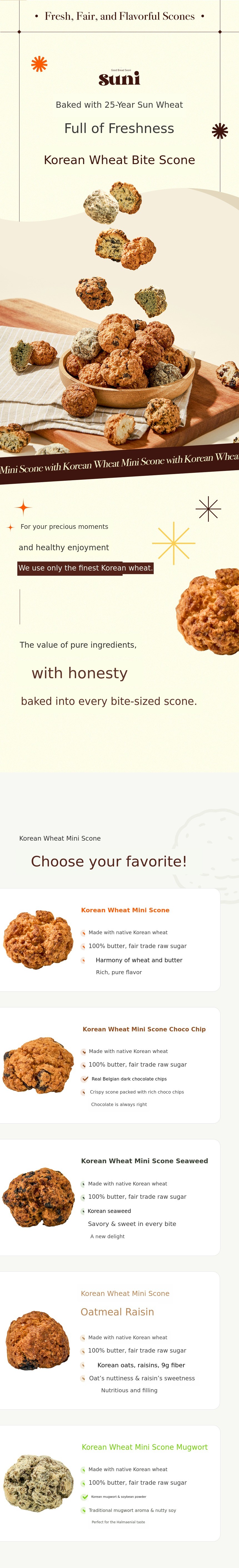 What I've felt through funding so far is that there are so many products that allow for new attempts and experiences, and even more supporters who cheer for them with an open mind. That's why, after Sooni Cookies, Sooni Jam, and Sooni's Gentle Bread, this is already our third new product meeting on Wadiz with our Korean Wheat Bite Scones!