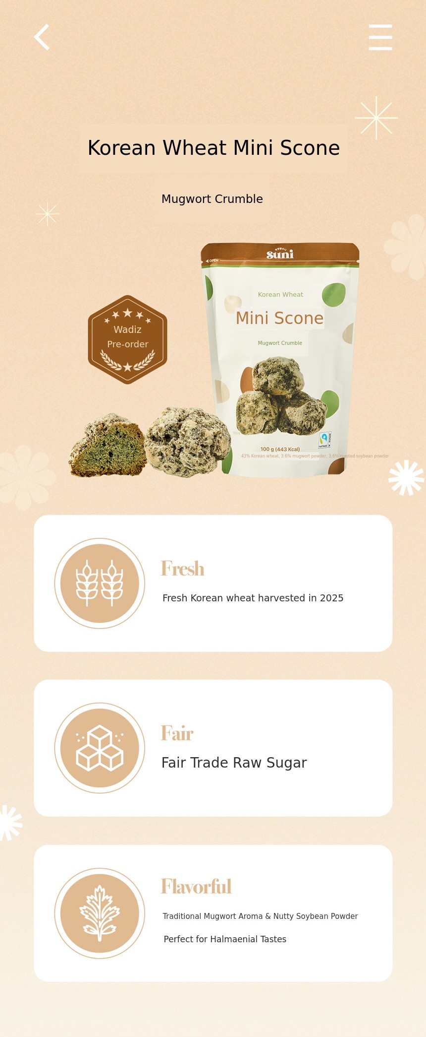 We hope that those discovering the taste of new wheat for the first time through Wadiz, as well as those looking for convenient desserts made with good ingredients, can connect and enjoy together with our Korean Wheat Bite Scones : )