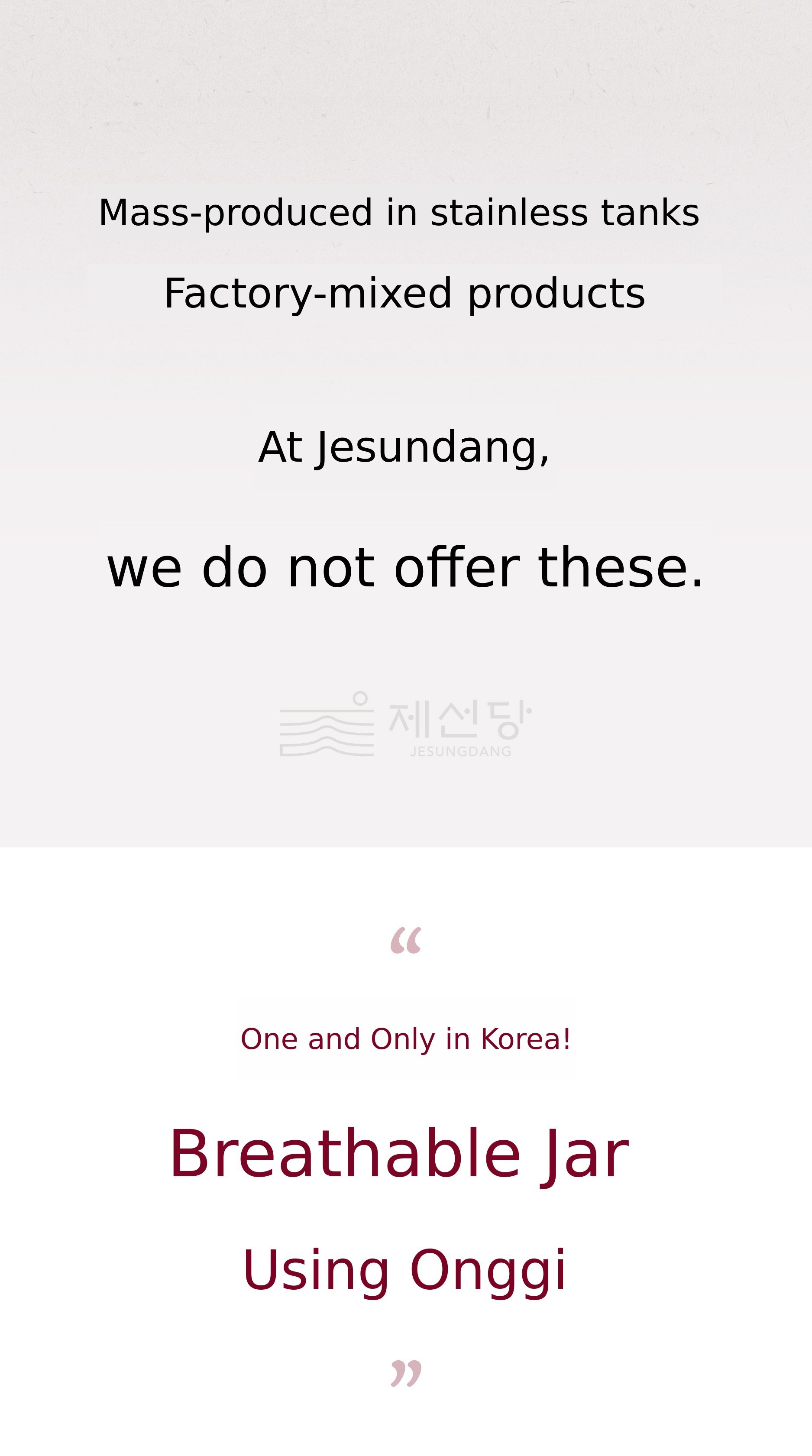 It has been 10 years since we started thinking about your health in a house that makes good things. I have not lost my original intention and sincerely create products that my family and I can enjoy together. As we grind natural ingredients as they are and ferment them in traditional earthenware, our products are made with a devotion that sets them apart from machine-made health foods. I believe that such dedication allows us to create truly good health foods, and I promise to continue to give my utmost effort. This is Gyeongju, the ancient capital of Silla for a thousand years. My heart, which learns and inherits the wisdom of our ancestors passed down for a millennium, is always for you. We put our devotion into each ingredient, seek the best raw materials, create the optimal conditions, and take time for long fermentation with the health of our beloved family (you) in mind. We hope that our sincerity is delivered to you through our products, which are made after a long period of fermentation.