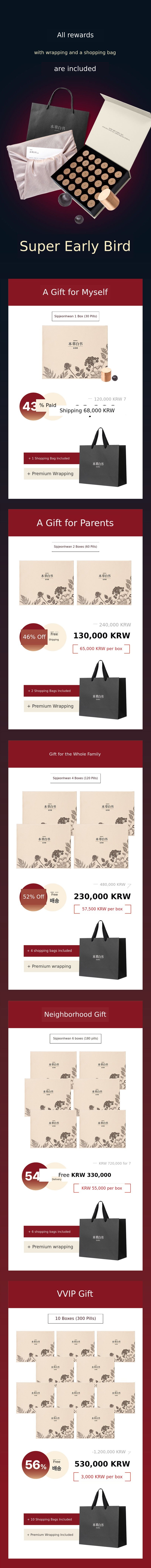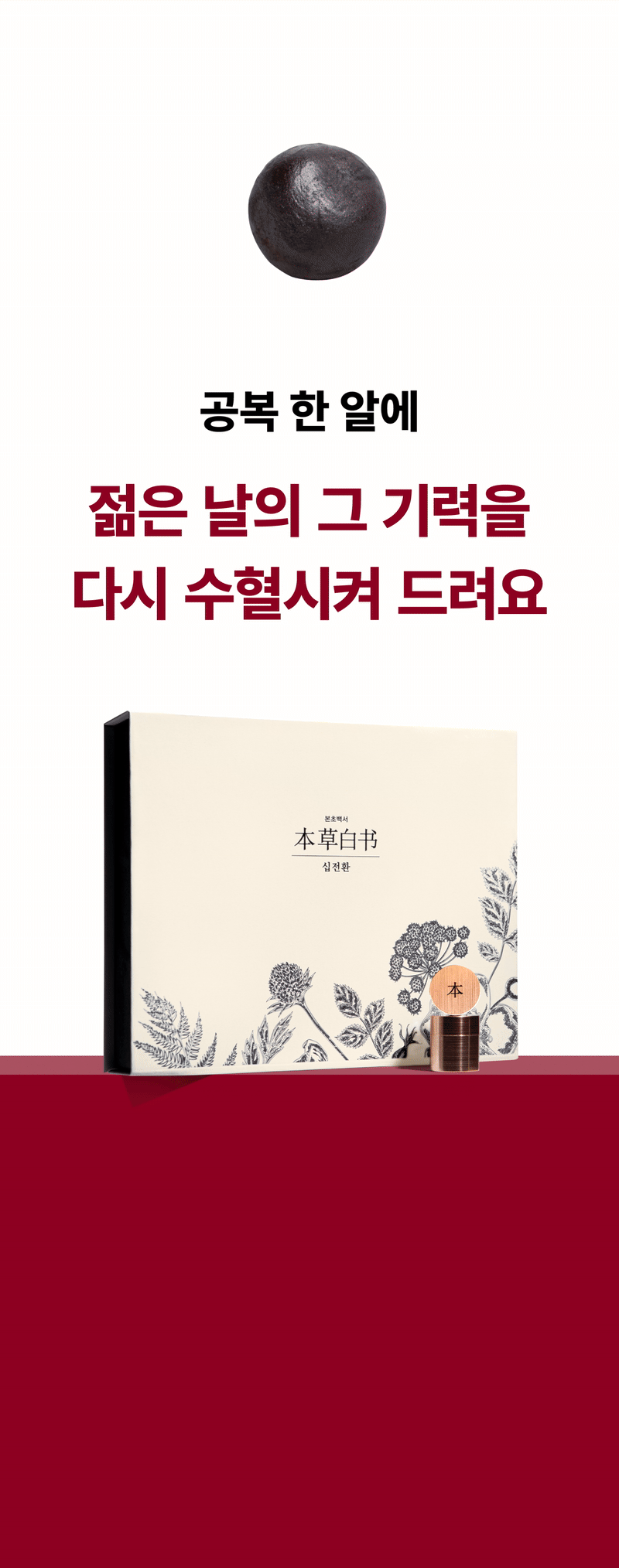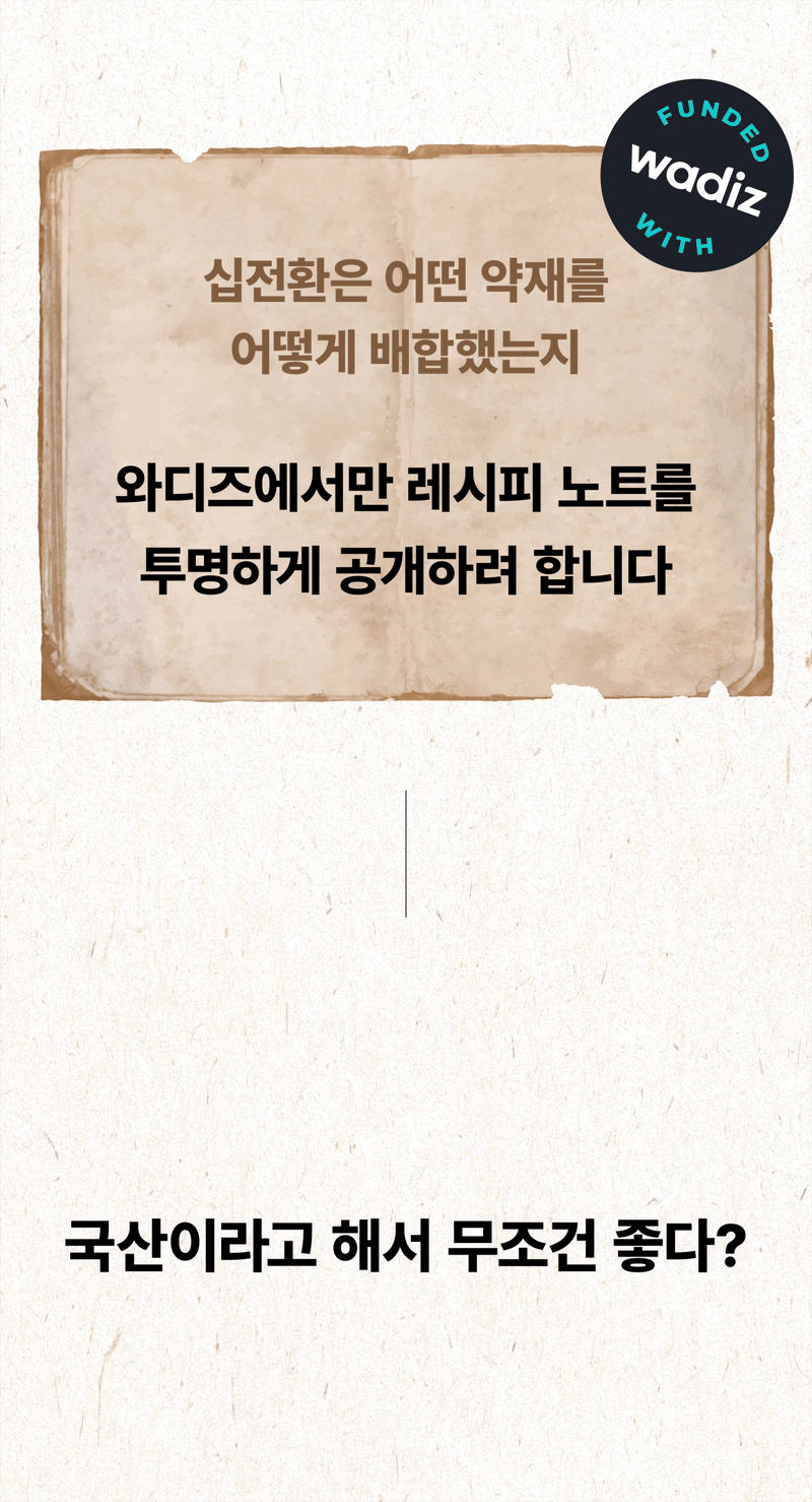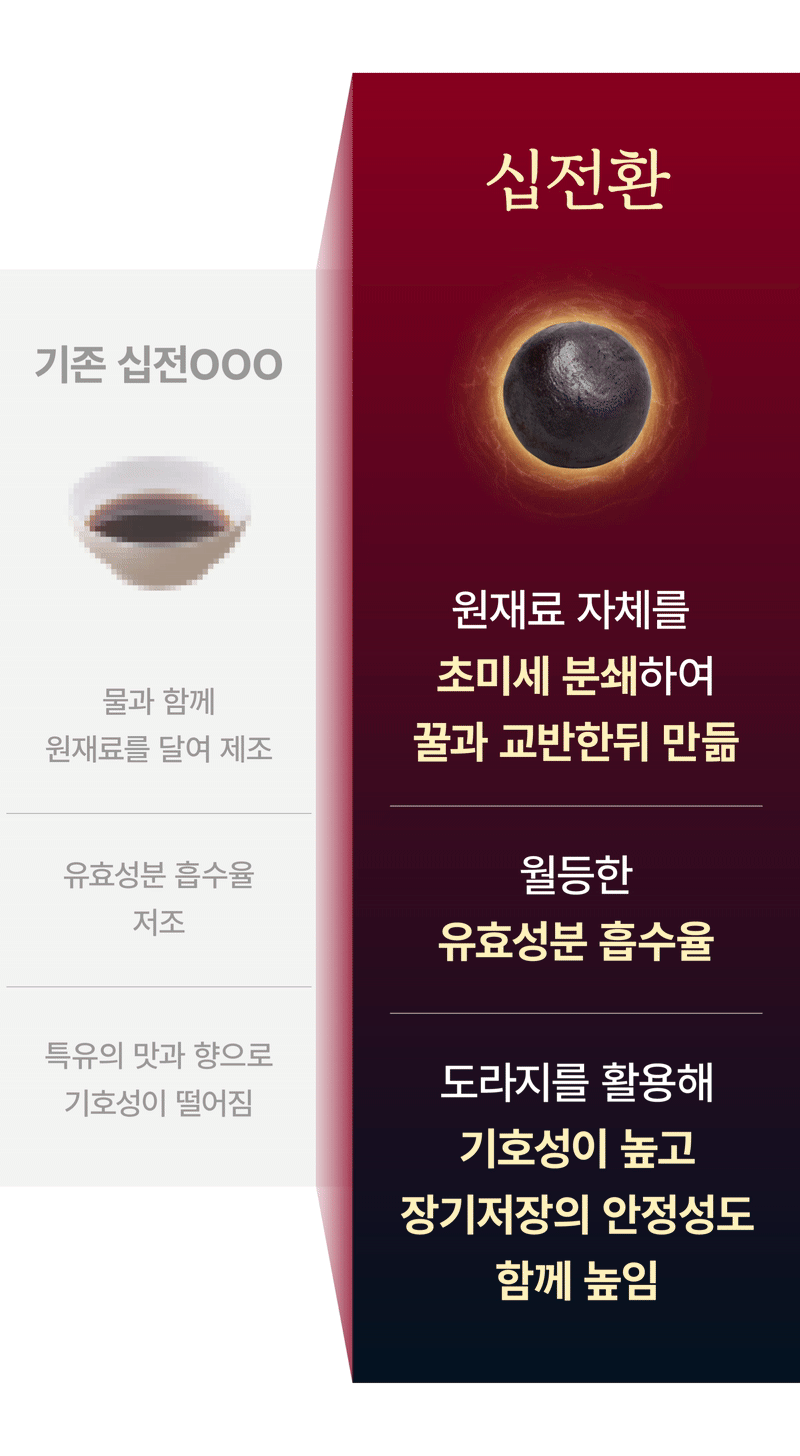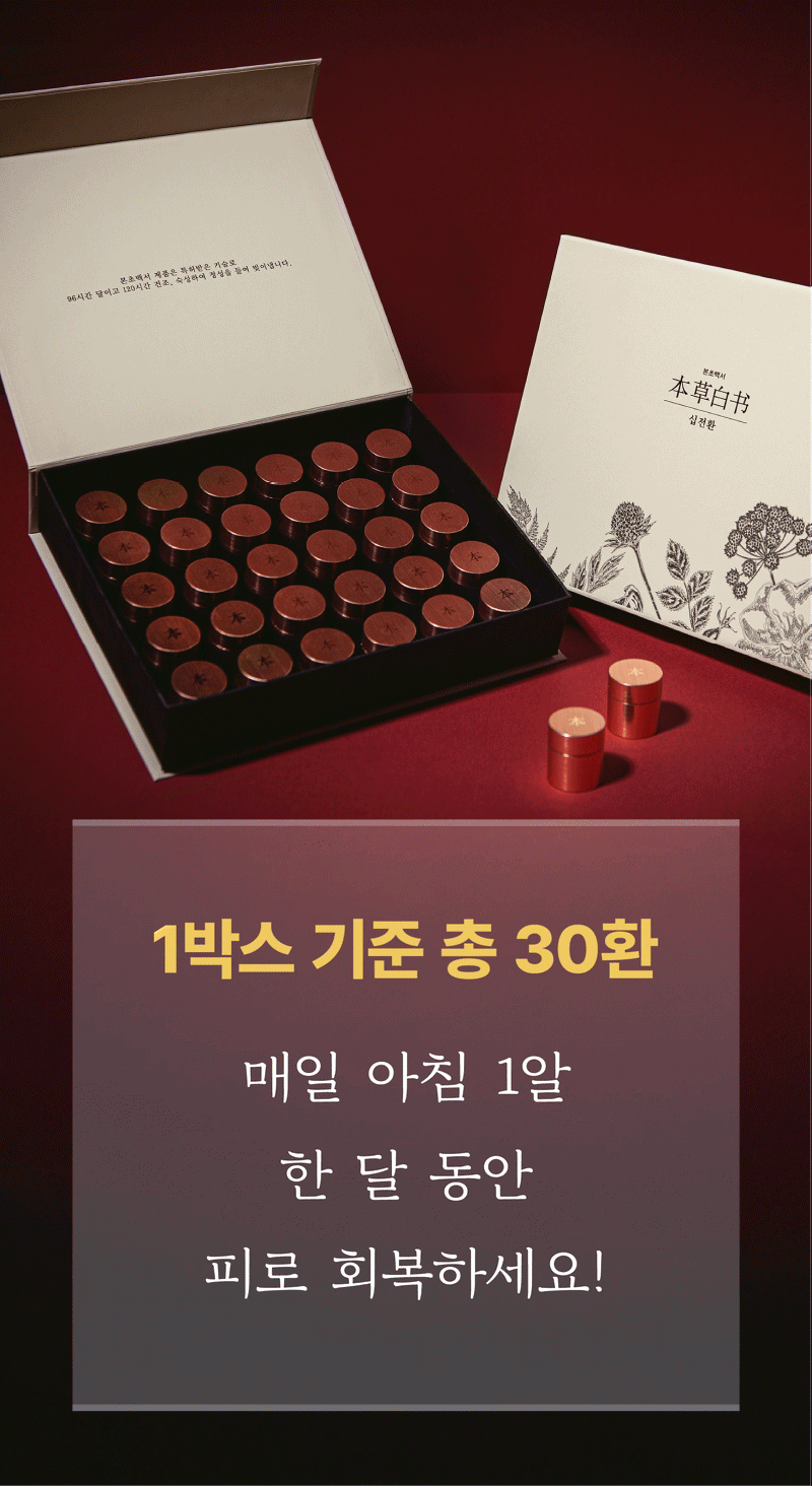 So this time, I wanted to show our supporters a product recognized for its patented technology called Sipjeonhwan. I confidently created it with the hope that many people could try this product, which is usually only available at oriental clinics, at a reasonable price and that everyone could be healthy. I hope it becomes a precious gift not only for yourself but also for your loved ones.